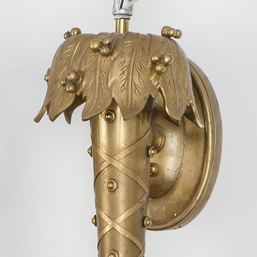 PAIR CHAPMAN BRASS WALL SCONCES: Heavy cast brass torch form with foliate top, no fixture, late 20th century production. 20 1/2'' h. x 6'' x 7''.