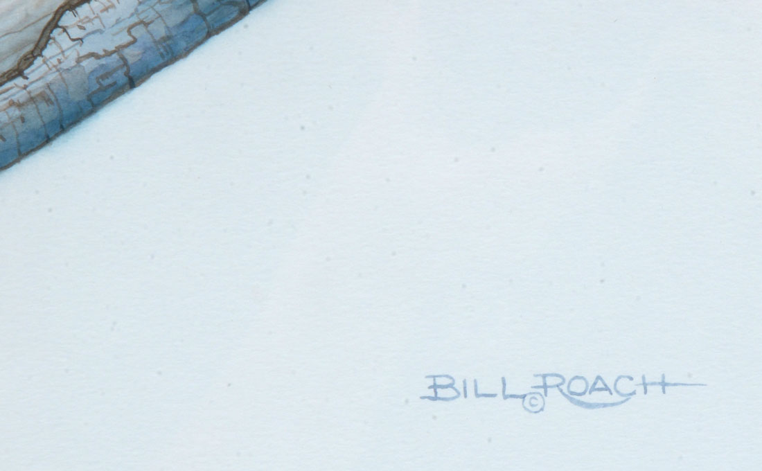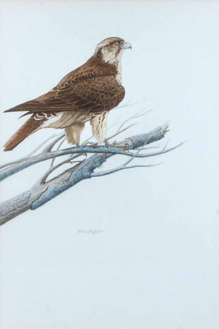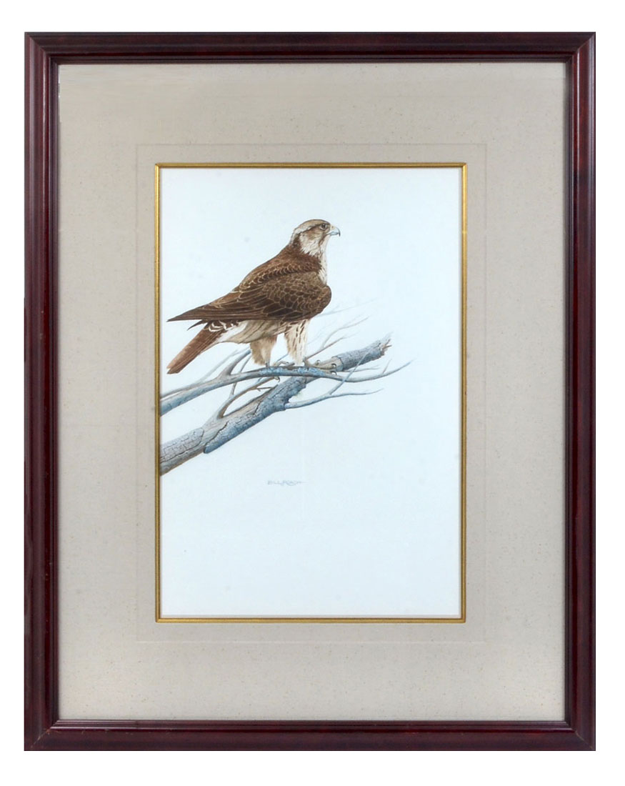 ORIGINAL BILL ROACH WATERCOLOR OF A RED TAILED HAWK: Watercolor, sight size is 24.50'' x 16.50'', signed custom frame and matting is 39.50'' x 31''.