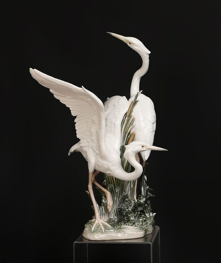LLADRO HERONS 1319 PORCELAIN FIGURINE: Spanish name ''Garzas'', sculptor Salvador Debon, issued 1976, glazed finish, 23'' h..