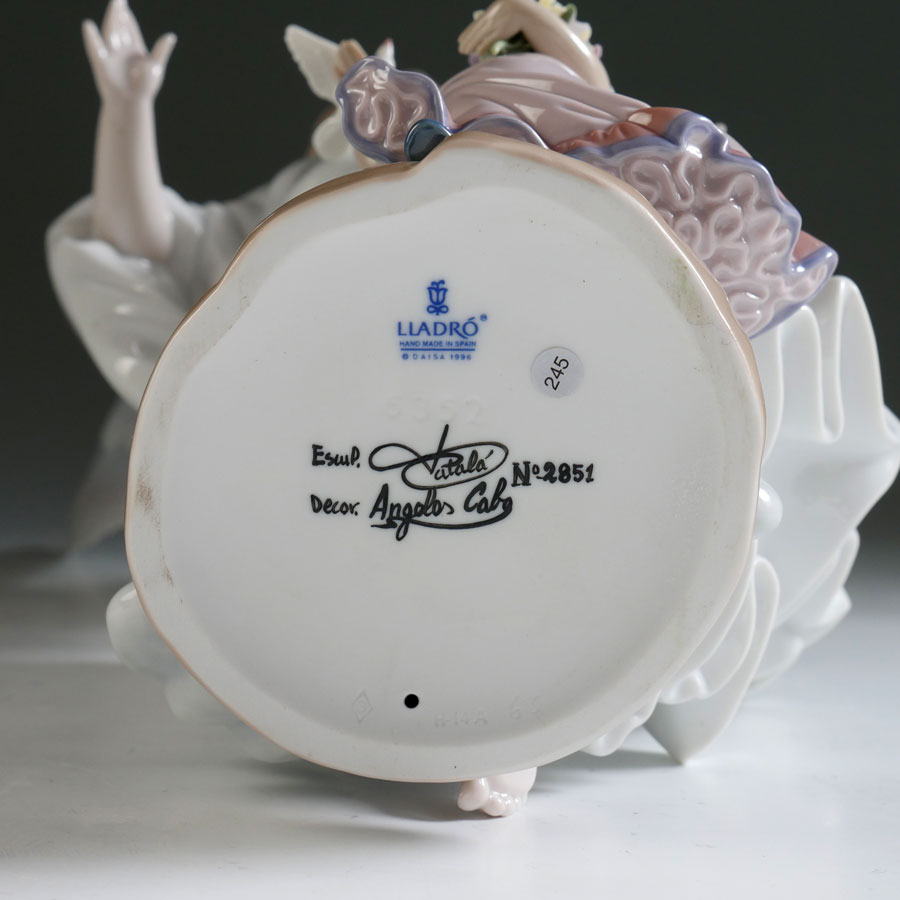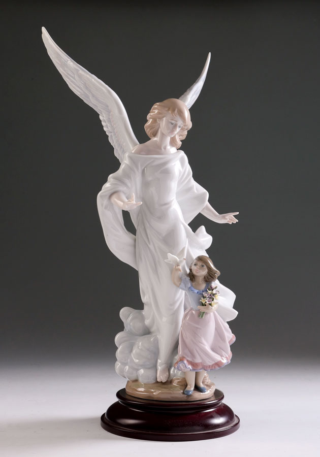 LLADRO GUARDIAN ANGEL 6352 PORCELAIN FIGURINE: Spanish name ''Angle de la Guarda S.L.'', sculptor Francisco Catalana, issued 1997, retired 1998, Limited Edition to LCS members only 2851/4000, 18 3/4'' h., sold with wood stand.