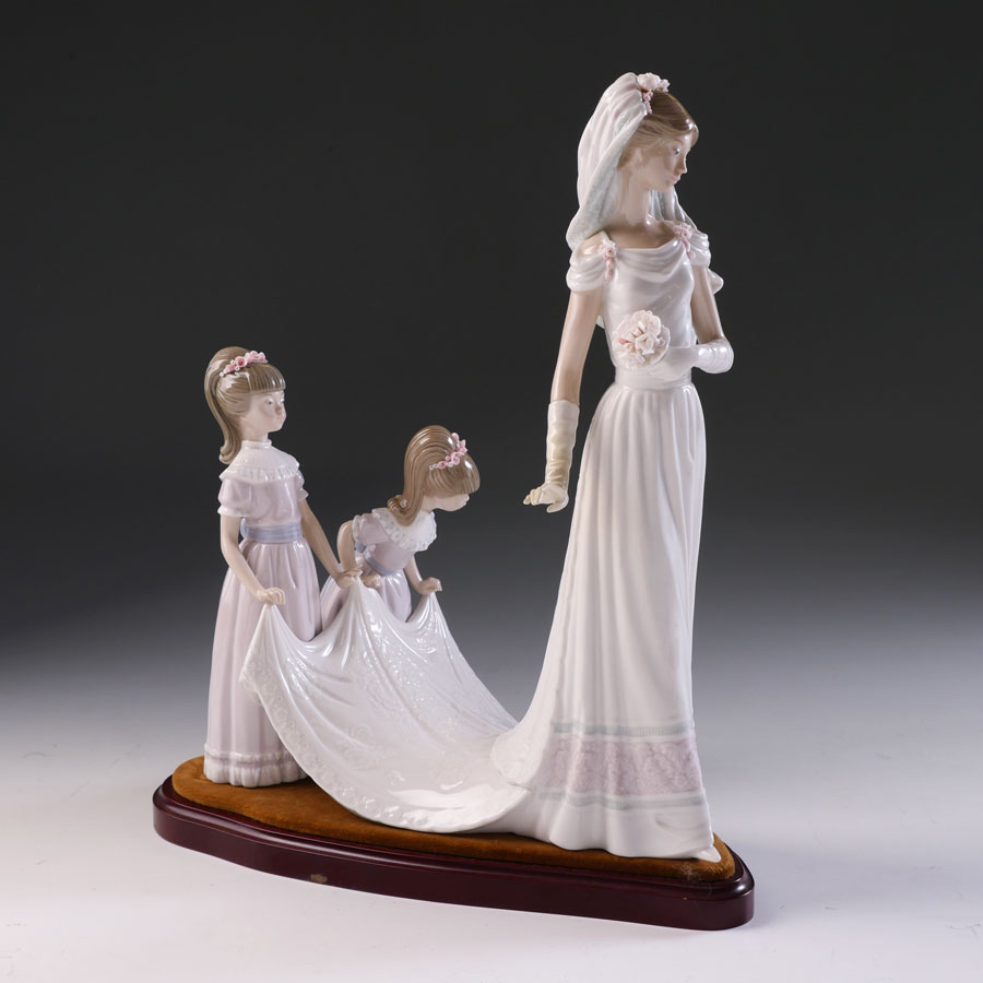 LLADRO HERE COMES THE BRIDE 1446 PORCELAIN FIGURINE: Spanish name ''Camino del Altar'', sculptor Jose Puche, issued 1983, retired 1997, glazed finish, 13 1/2'' h.