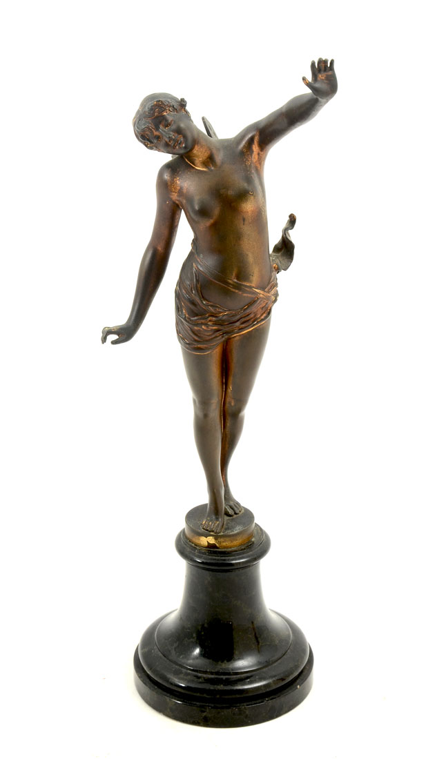 ROSSI BRONZE PSYCHE SCULPTURE: 11.75'' h., signed on base and dated '90, affixed to marble plinth, 15.25'' overall.