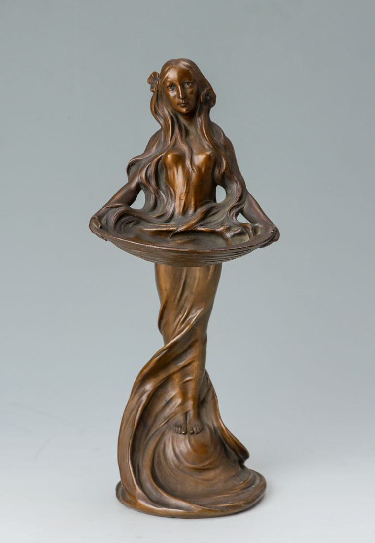PERIOD FIGURAL NOUVEAU BRONZE CARD HOLDER: 11.5'' h., no visible signature.