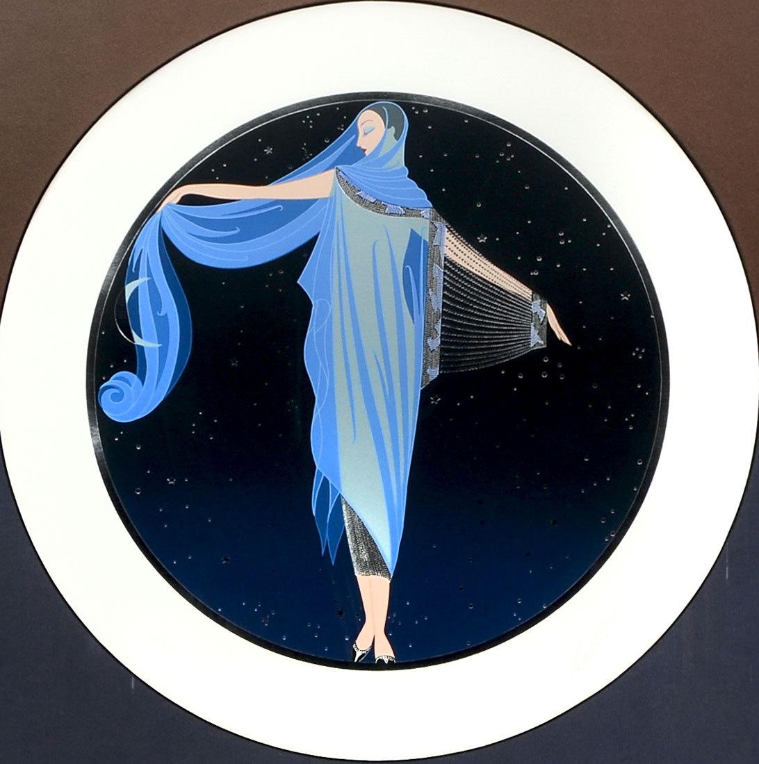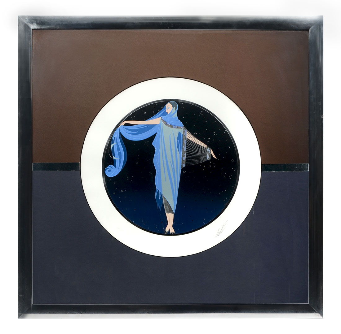TIRTOFF, Romain (Erte) De, (Russian-French, 1892-1990): ''Moonlight Serigraph'', Diameter with margins is 17.50'', pencil signed lower and numbered 286 of 300 lower left, fine custom frame and mating is 30'' x 30''.