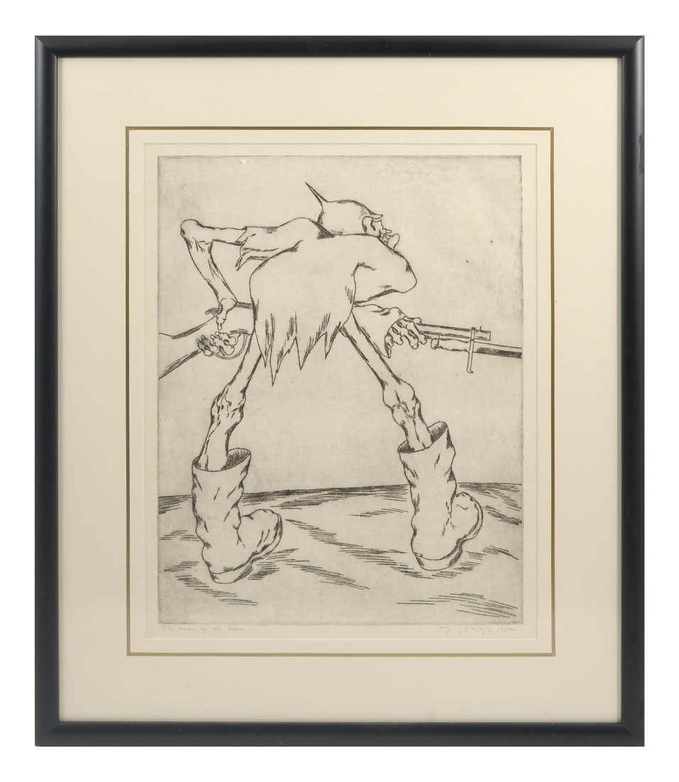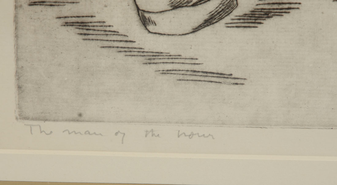 HAGEDORN, Edward, (American, 1902-1982): ''The Man of the Hour'', Etching, sight size is 17'' x 13'', pencil signed lower right and titled lower left, framed 24'' x 20.50''.