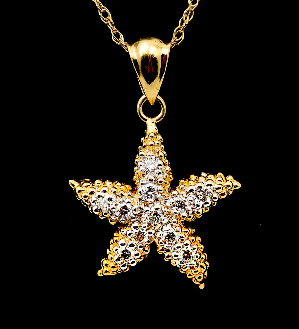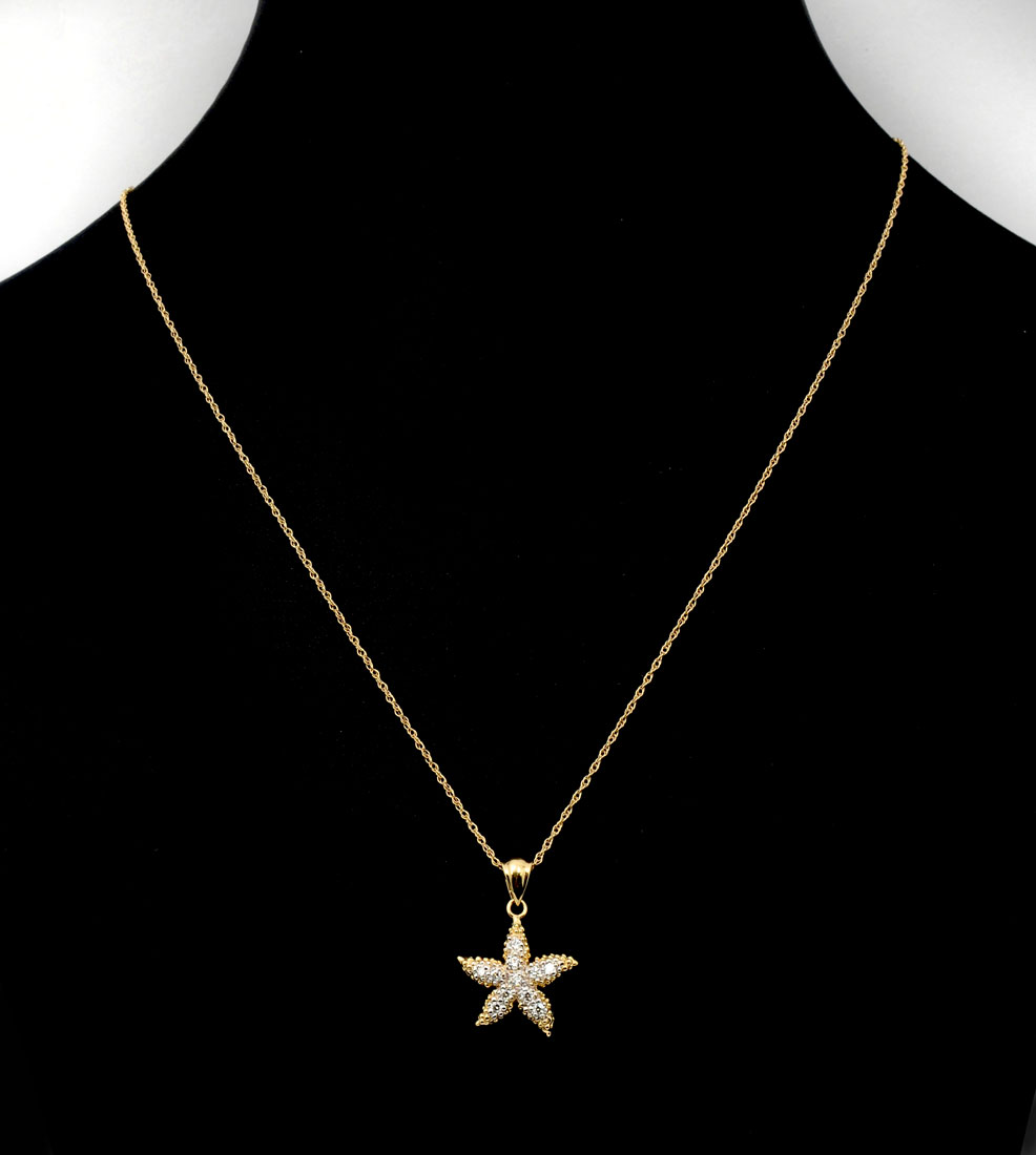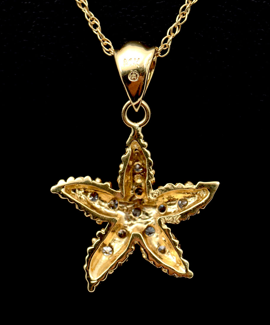 14K DIAMOND STAR FISH PENDANT: Really sweet starfish pendant on 14K chain that adjusts to 16'' or 18''. Weight 3.2 grams.