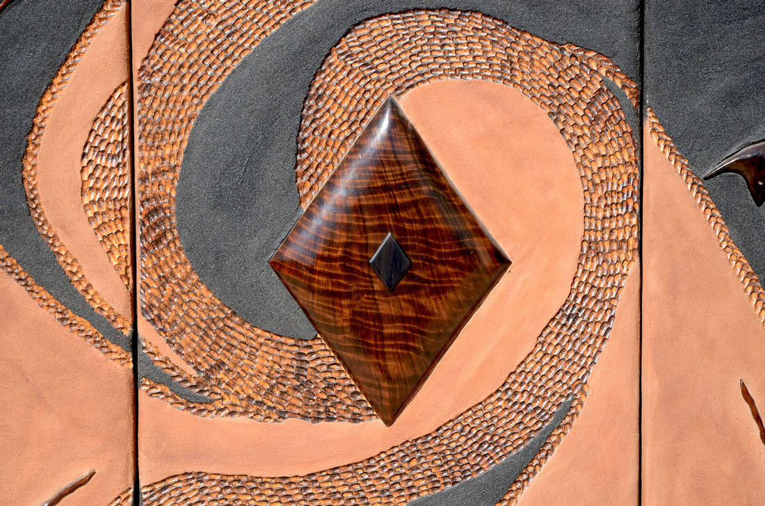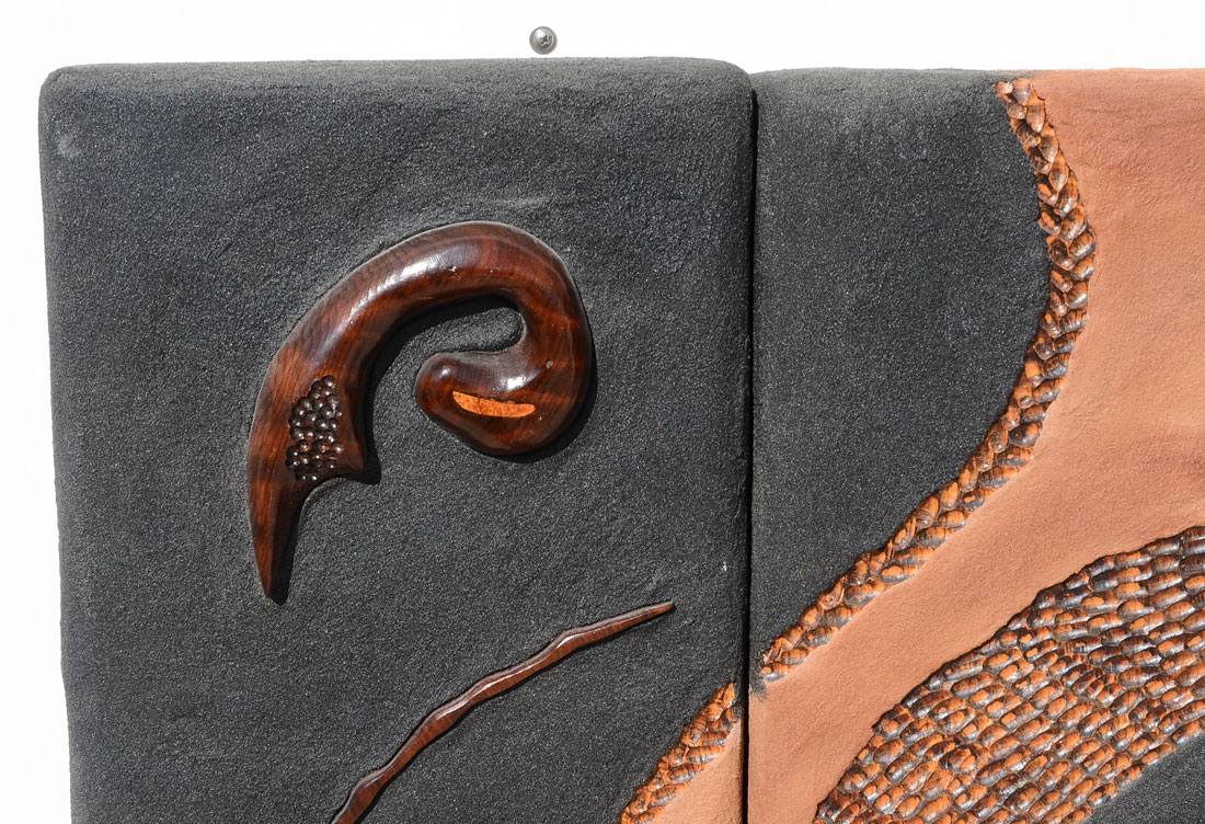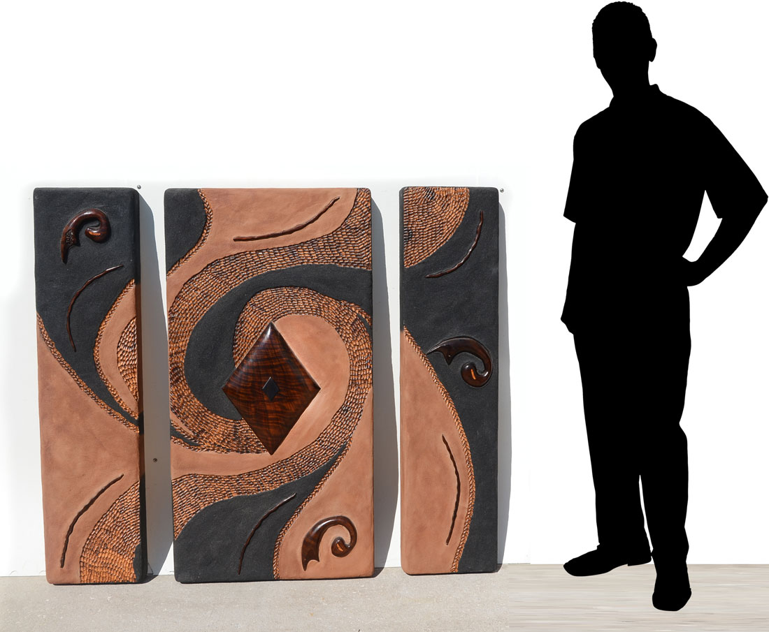 FRASCA HALLIDAY DIAMONDS IN THE ROUGH TRIPTYCH: Acrylic on canvas triptych painting with applique, signed Frasca/Halliday ''Diamonds in the Rough'', 48 x 52 inches overall.