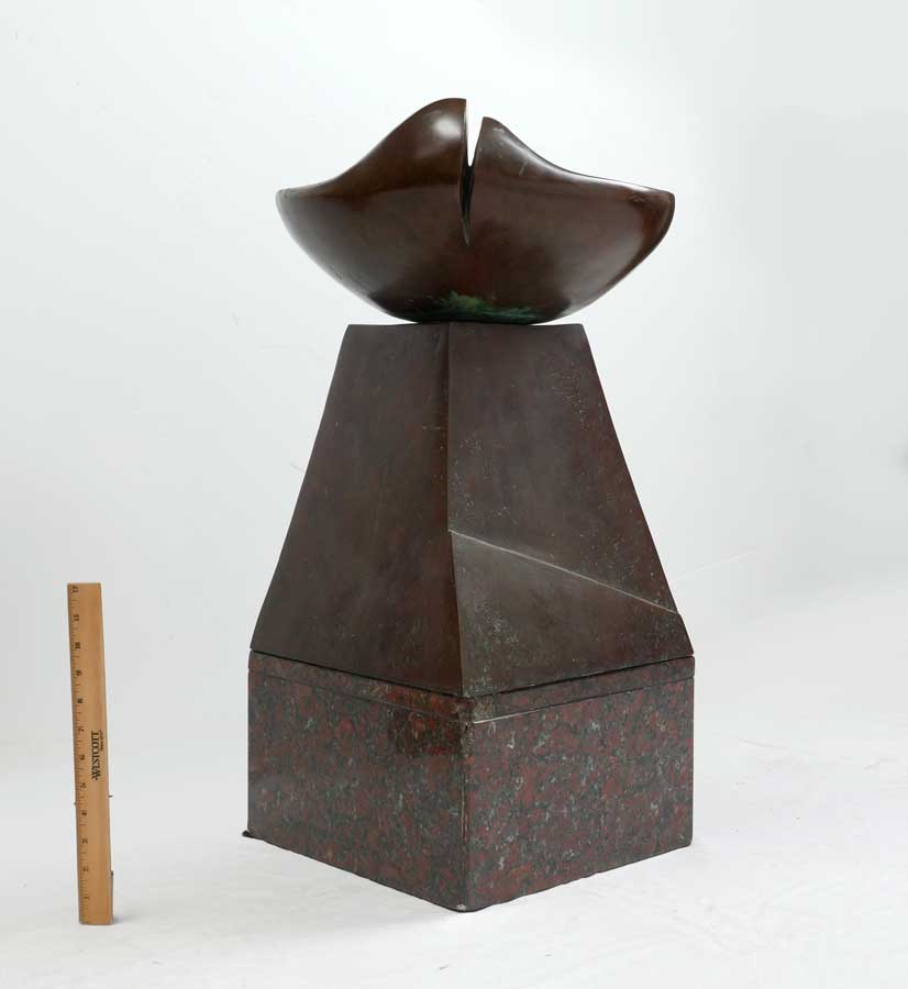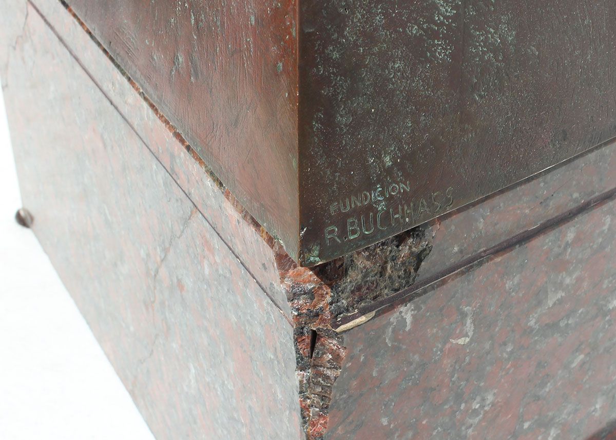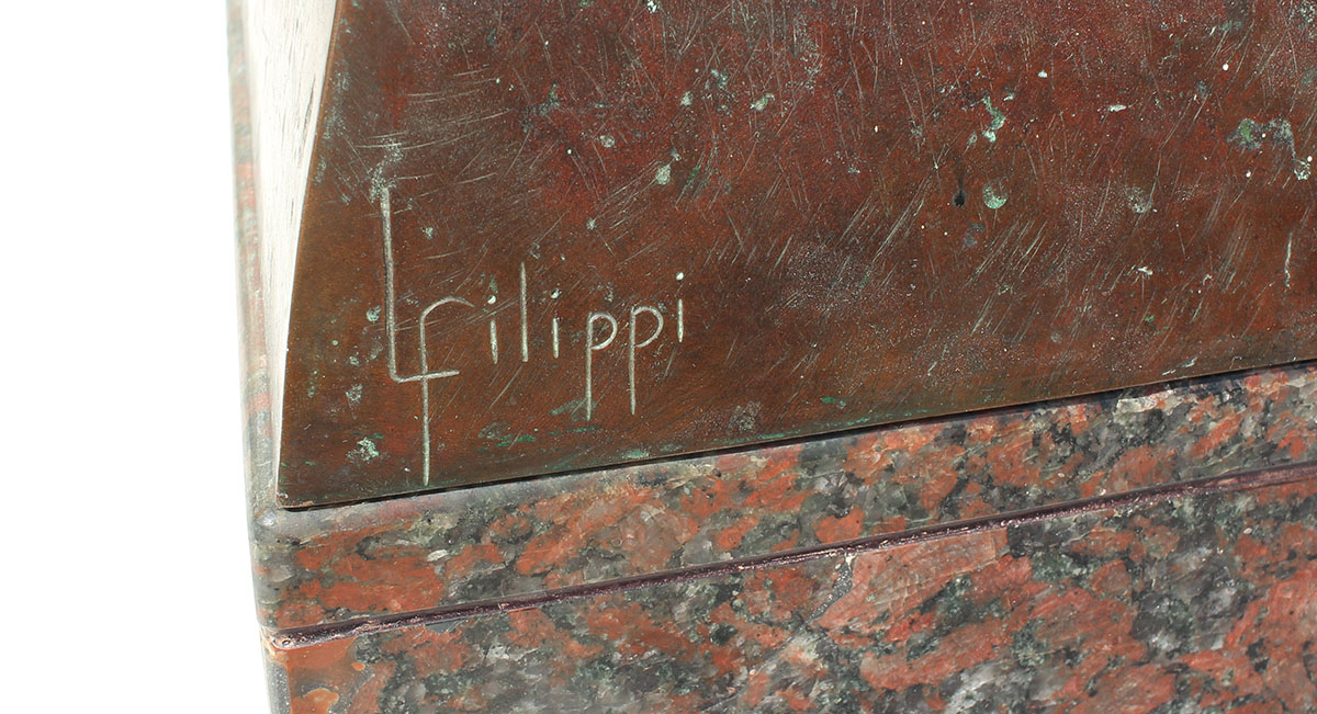 DECO BRONZE FOUNTAIN BY L. FILIPPI: Signed and bears R. Buchass foundry mark, 20'' x 17'', sits atop a granite/marble plinth, 8'' h.