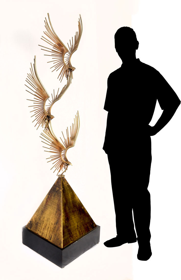 JERE, Curtis, (American, 1910-2008): Mixed Metal Sculpture ''Birds in Flight'', approximately 80'' in height.