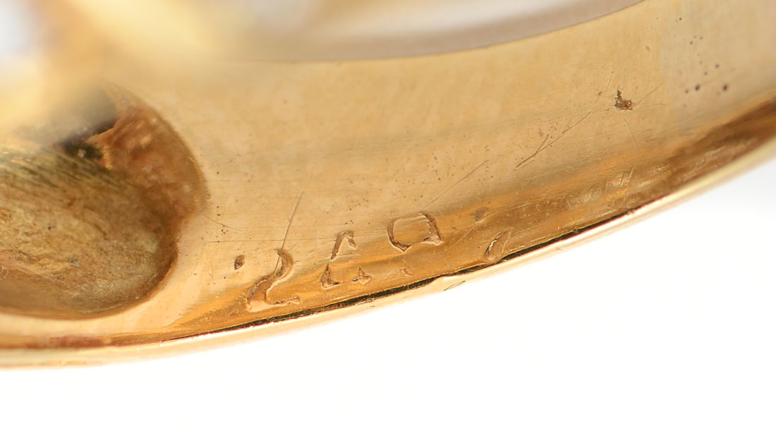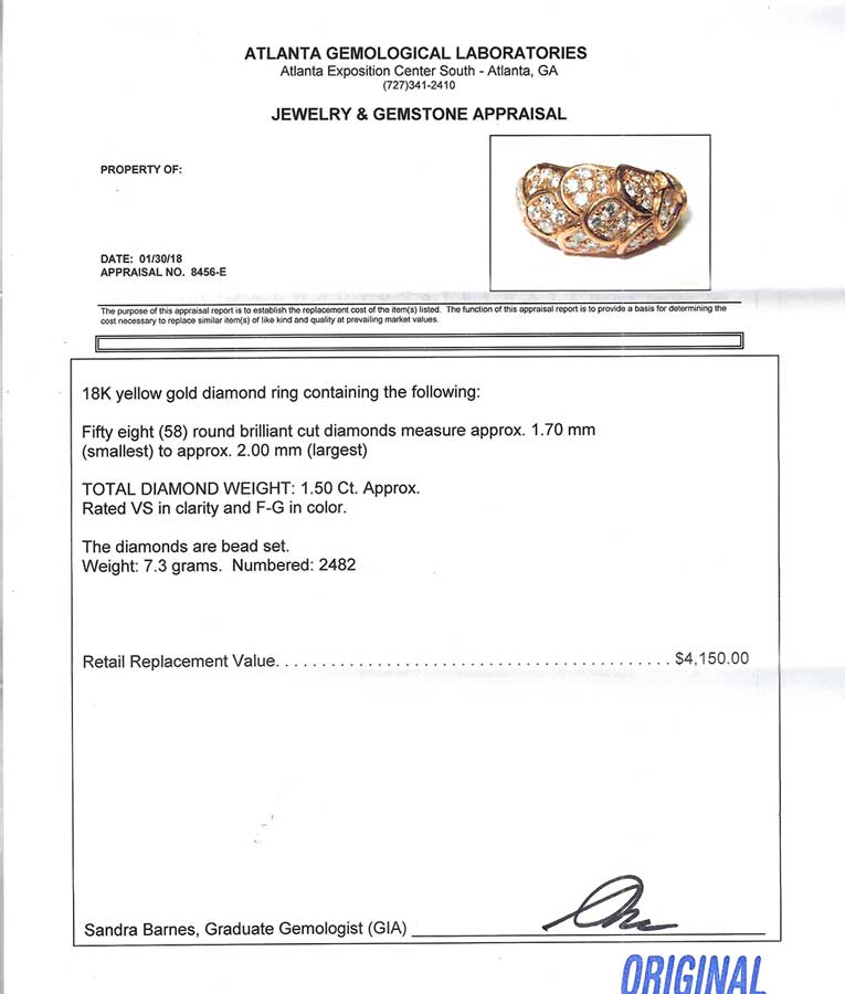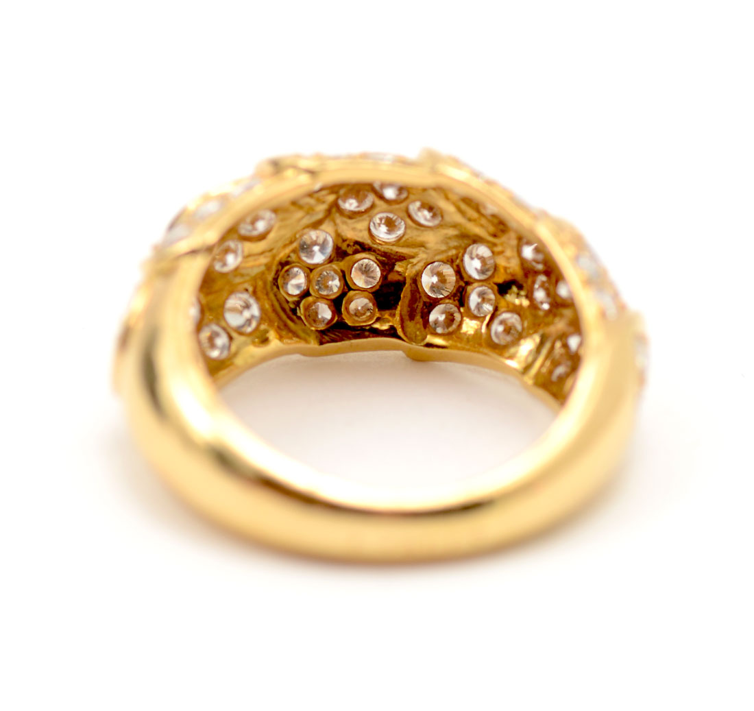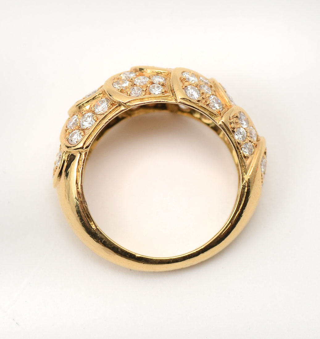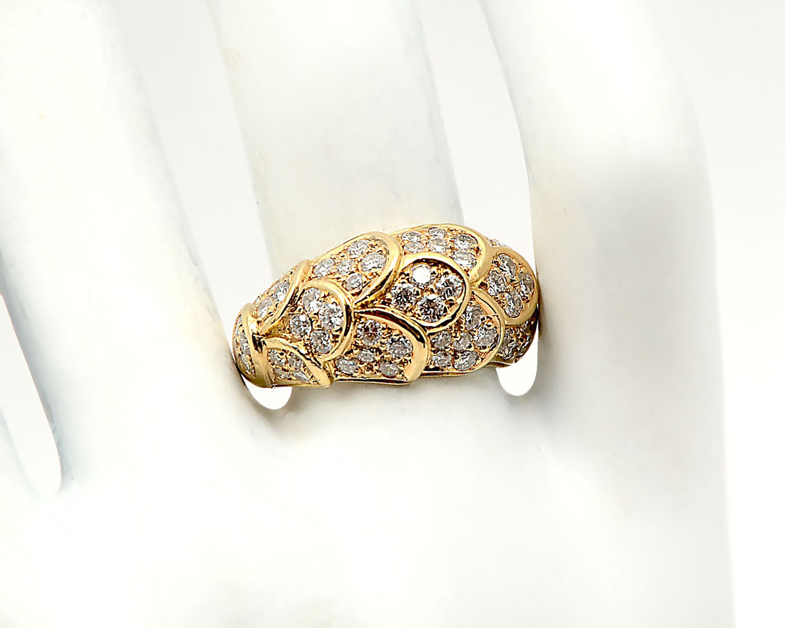 18K DOMED DIAMOND RING: This ring could be Van Cleef & Arpel as it is numbered 2482 and there is a partial signature (due to being sized smaller). 1.50 CTW VS diamonds. Size 6. Weighs approx 7.3 grams.