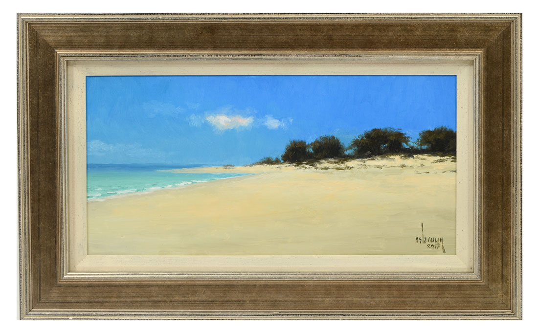 BROWN, Ryan S. (American, 20th/21st C.): ''Lido Beach'', Oil/Board, sight size is 7'' x 13'', signed lower right and dated 2017, fine William Hartman framing is 9.50'' x 15.50''.