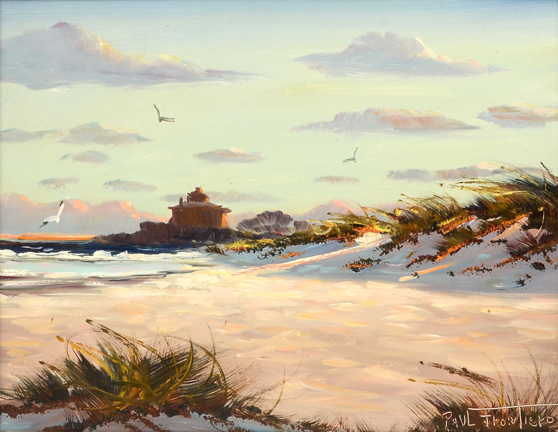 FRONTIERO, Paul, (American, 20th C.): ''Good Harbor Beach'', Oil/Board, sight size is 12'' x 16'', signed lower right and titled verso, original frame is 17'' x 21''.