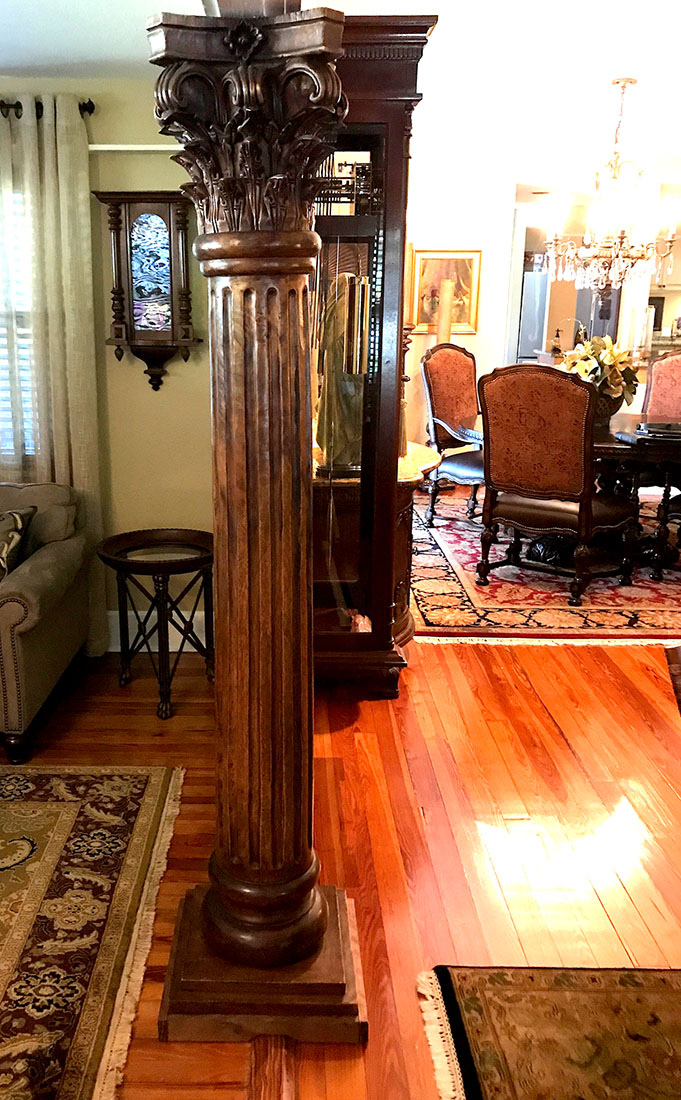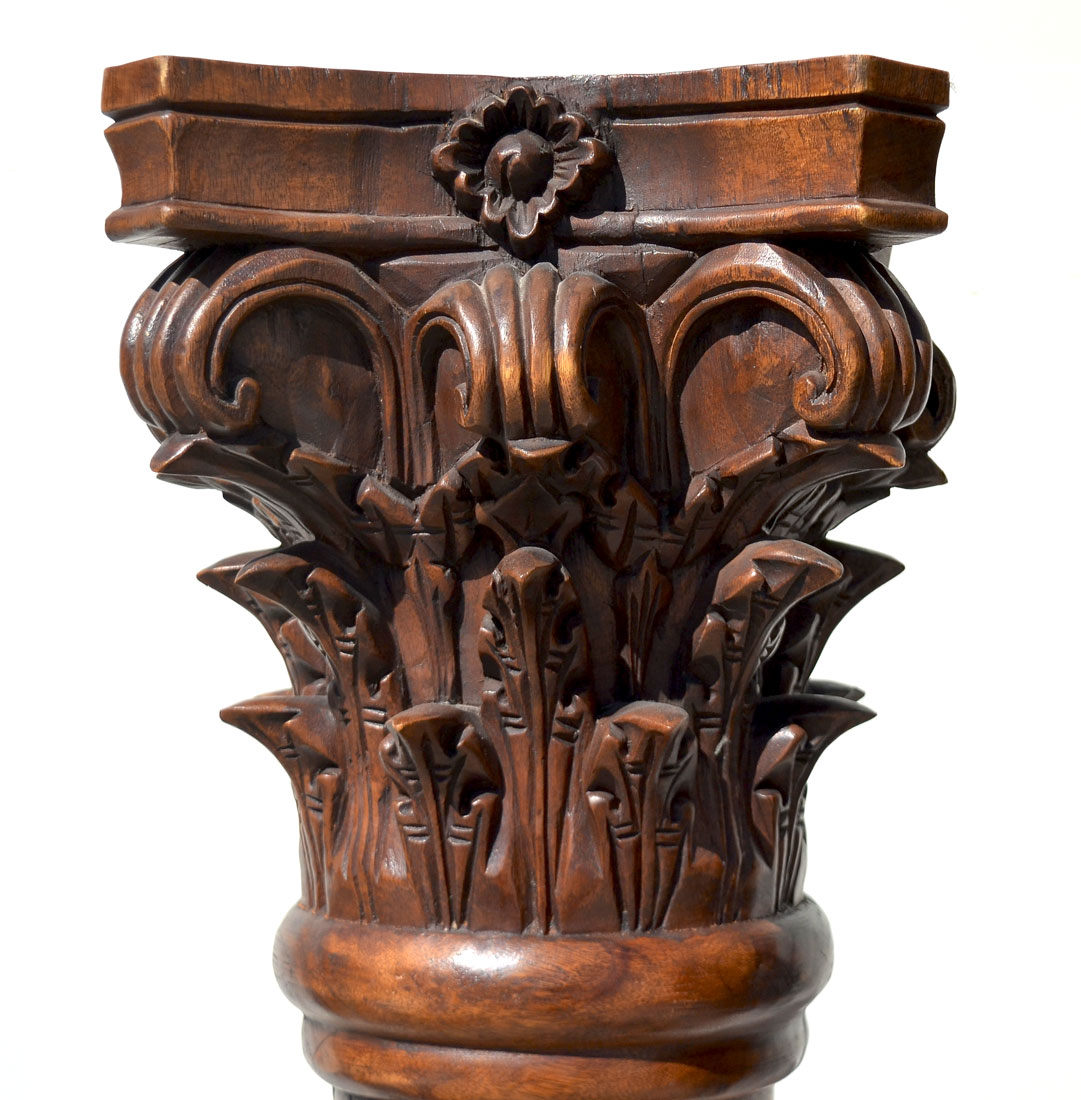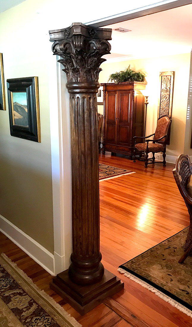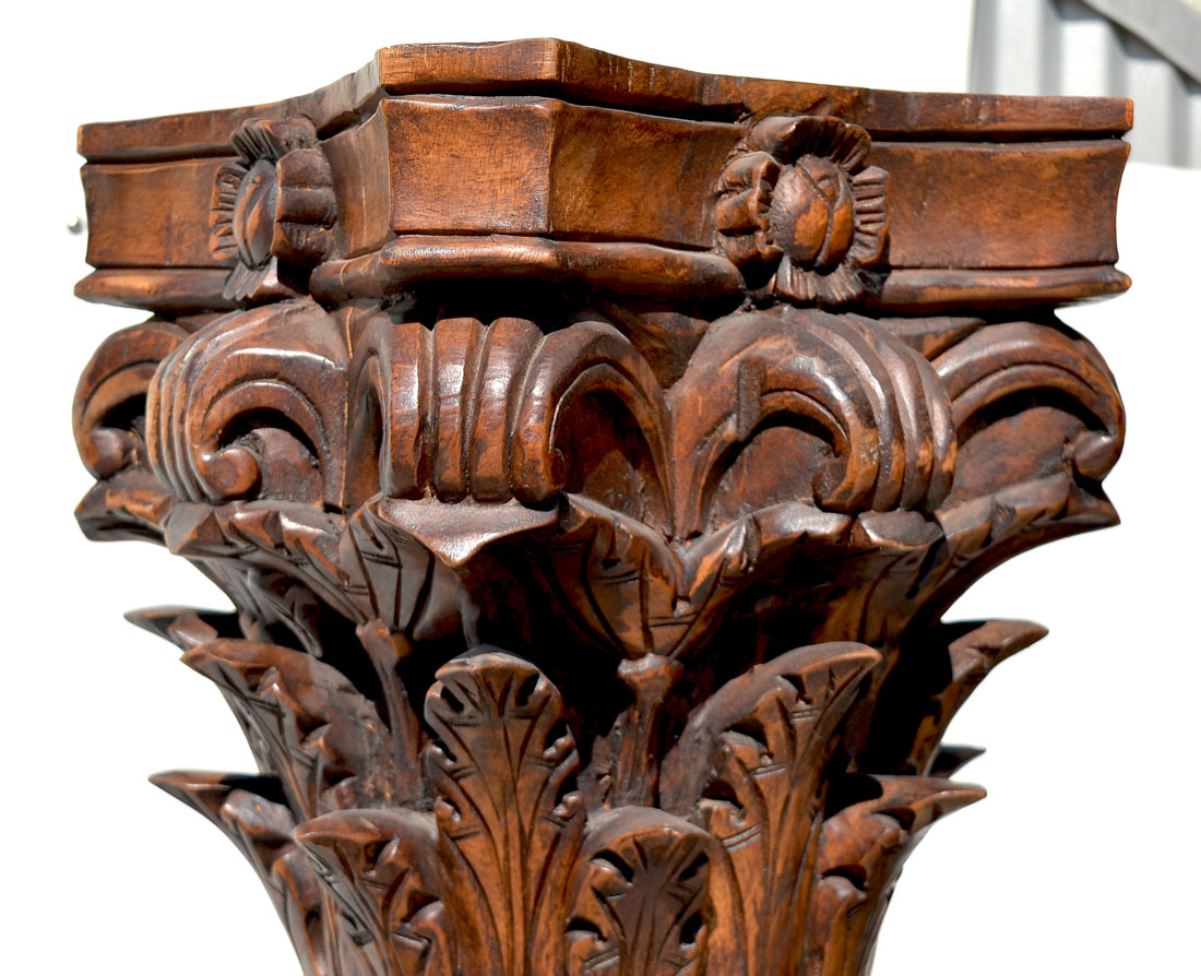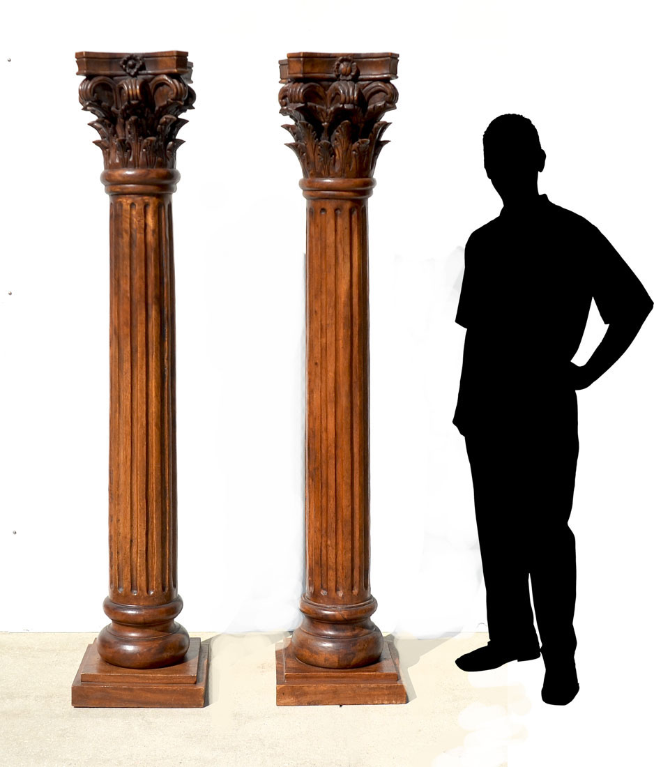 PAIR OF LARGE CARVED WOOD COLUMNS: 2 Palatial carved wood fluted columns with Corinthian carved Terminals. 78.5'' h x 15.5'' l x 16'' w