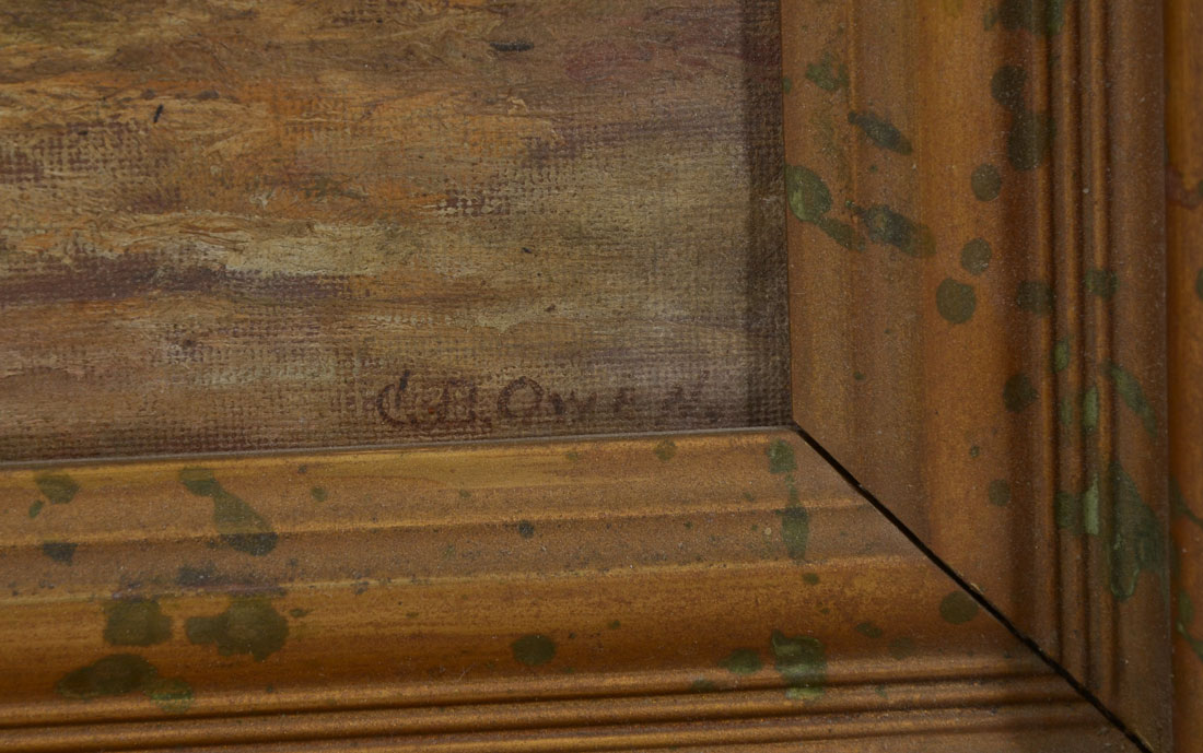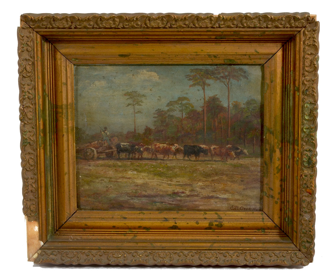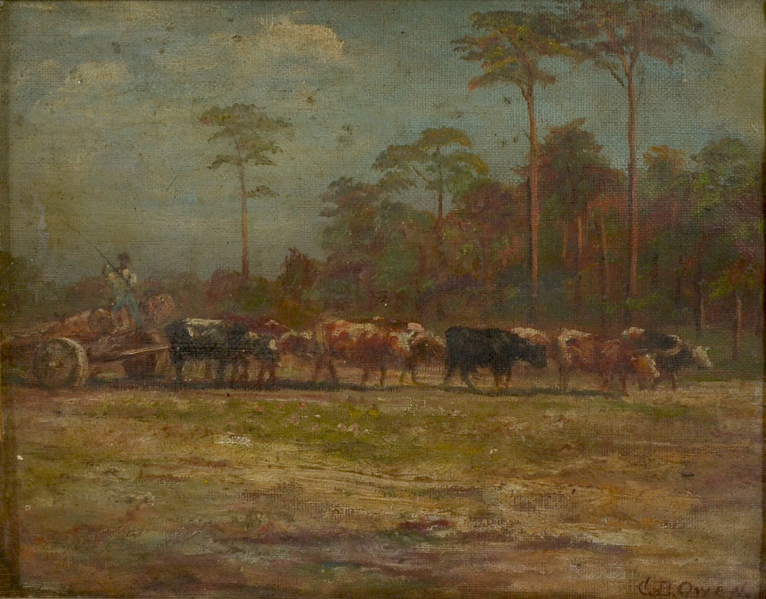 OWEN, Clara Belle, (American-French, 1854-1955): Oxen Hauling Lumber, possibly a Florida Landscape, Oil/Canvas, sight size is 7.50'' x 9.50'', signed lower right, framed 11.50'' x 13.50''.