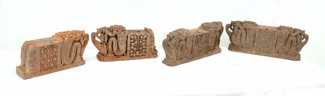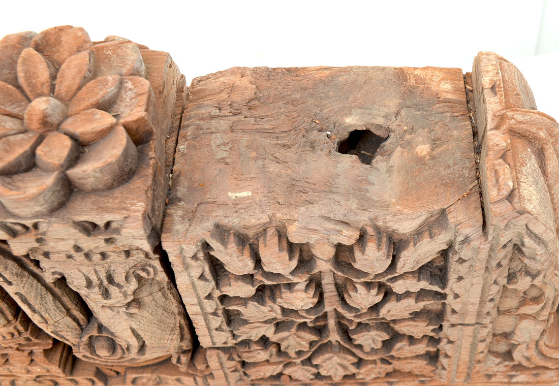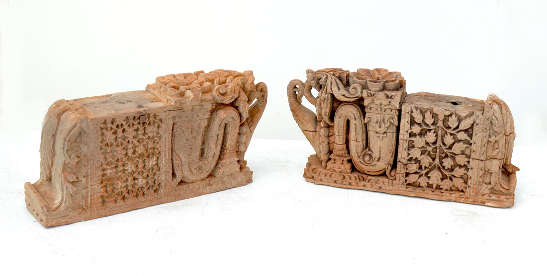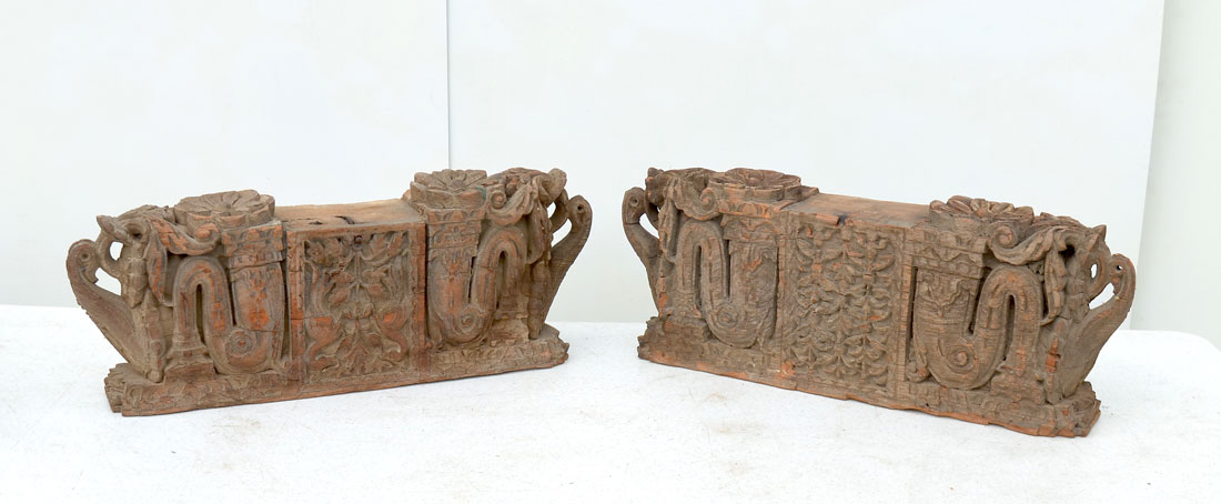 4 CARVED WOODEN ARCHITECTURAL SUPPORTS: Indo-Persian carved architectural supports that have floral and foliate design. 19TH century possibly older. 2 are approx. 9.125'' H x 25.125'' L x 5'' W and 2 are approx. 9'' H x 19.125'' L x 5'' W.