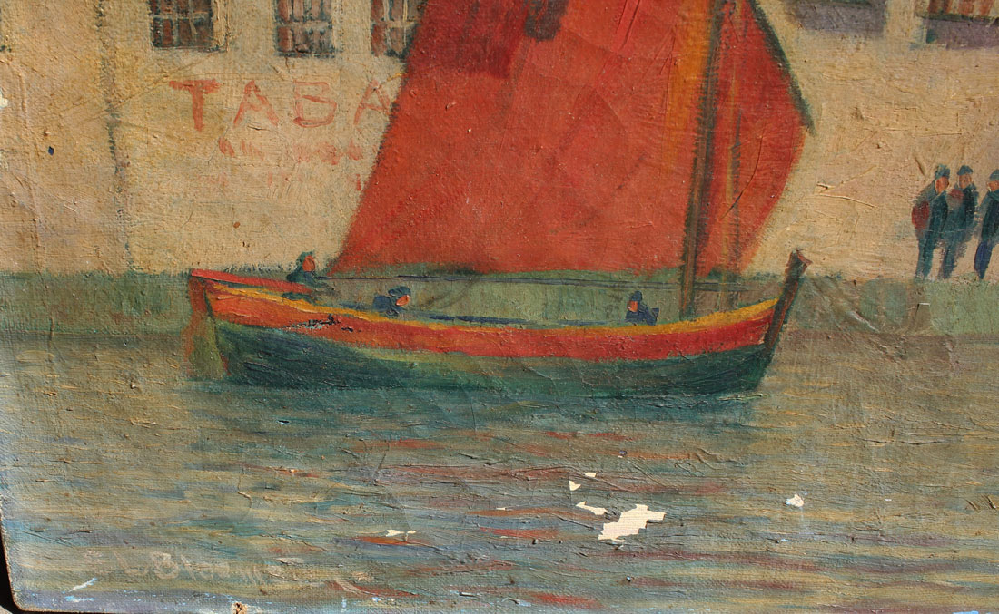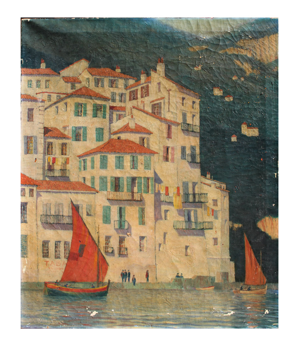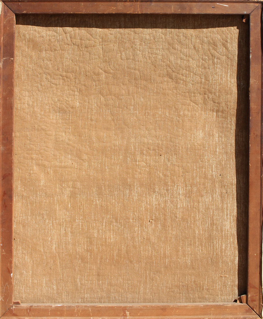 CONDITION: Craquelure throughout, with scattered paint fleck, needs cleaning, several small punctures, sold as is.