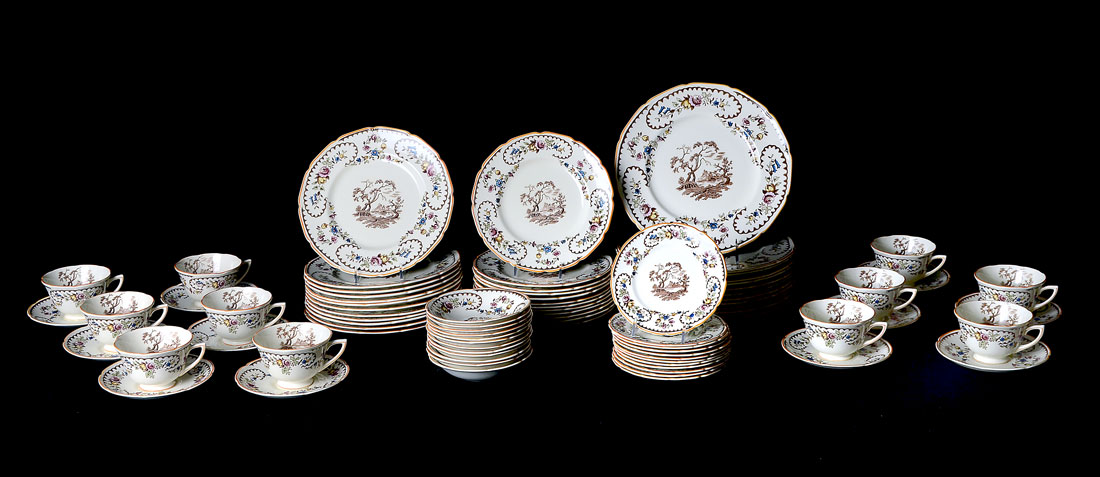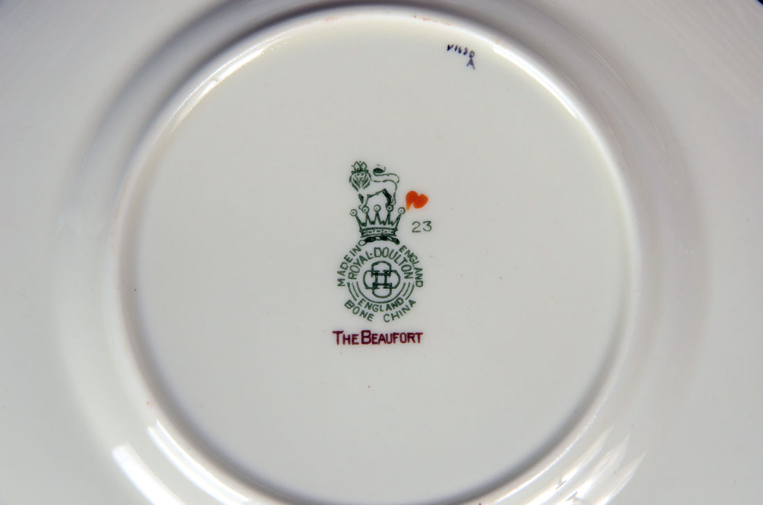 ROYAL DOULTON THE BEAUFORT CHINA SERVICE: Approx. 83 pieces in the ''The Beaufort'' pattern by Royal Doulton to include 12 dinner plates (10 1/2''), 12 luncheon plates (9 1/8''), 12 salad (8 1/4''), 12 bread plates (6 1/4''), 12 dessert bowls (5 1/2''), 12 cups and 11 saucers.
