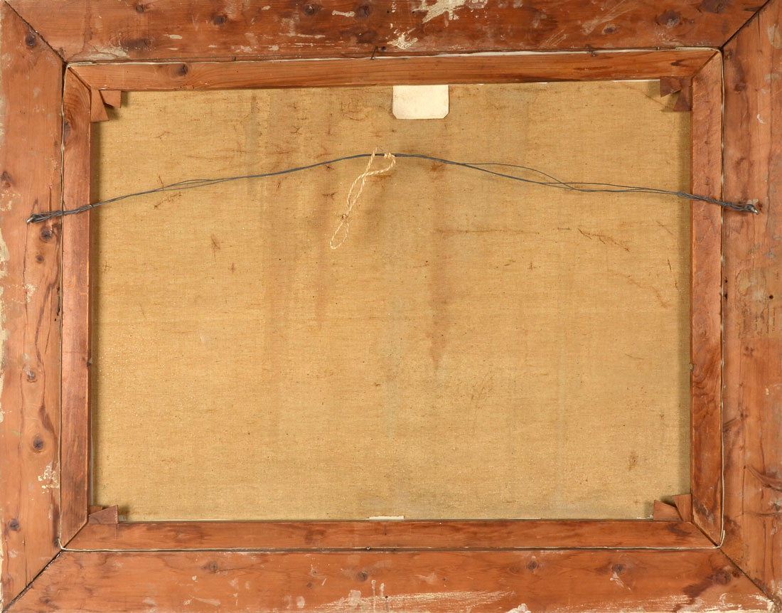 CONDITION: Scattered craquelure throughout, needs cleaning, patch visible verso, frame has some loss, sold as is.