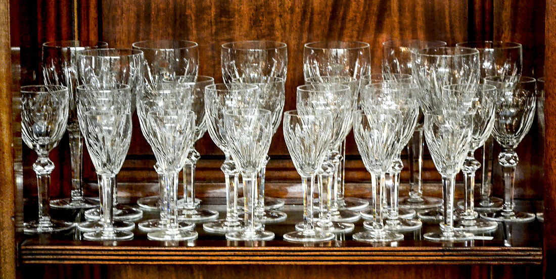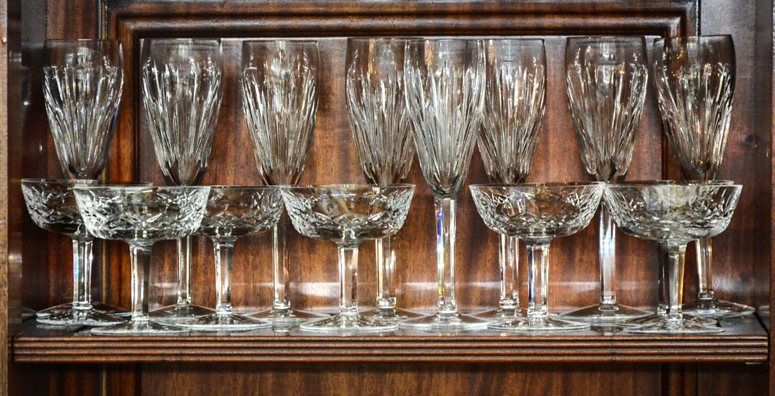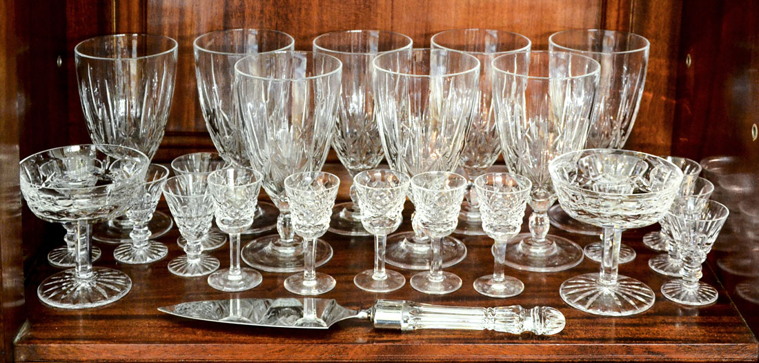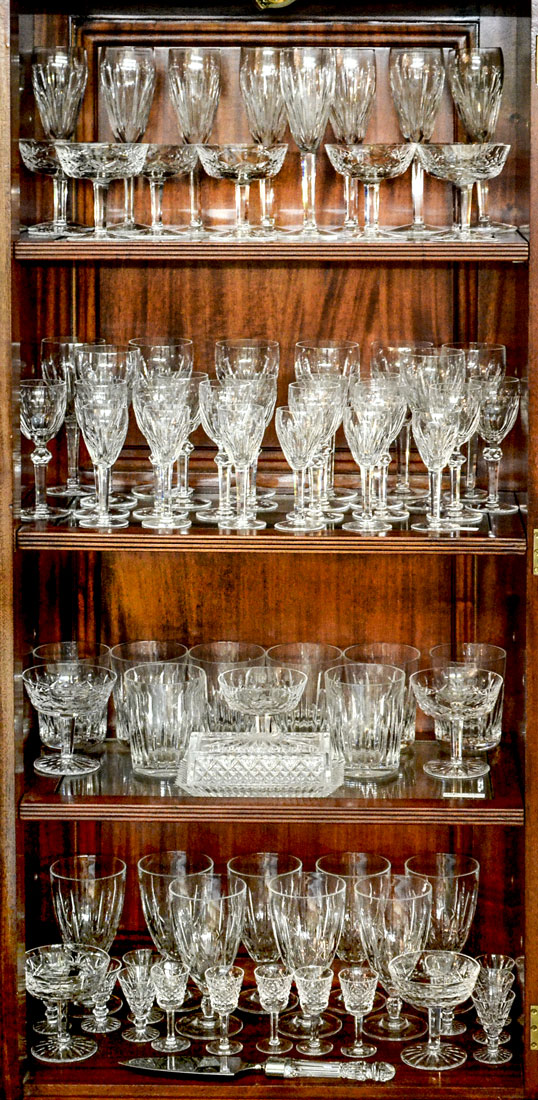 MASSIVE COLLECTION OF WATERFORD CRYSTAL STEMWARE- Approx. 78 pieces of Waterford Crystal stemware in patterns including Carina, Lismore and more.