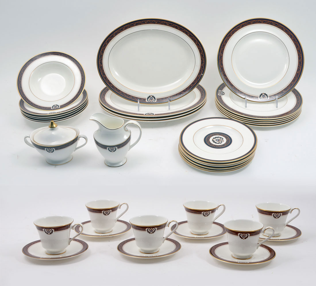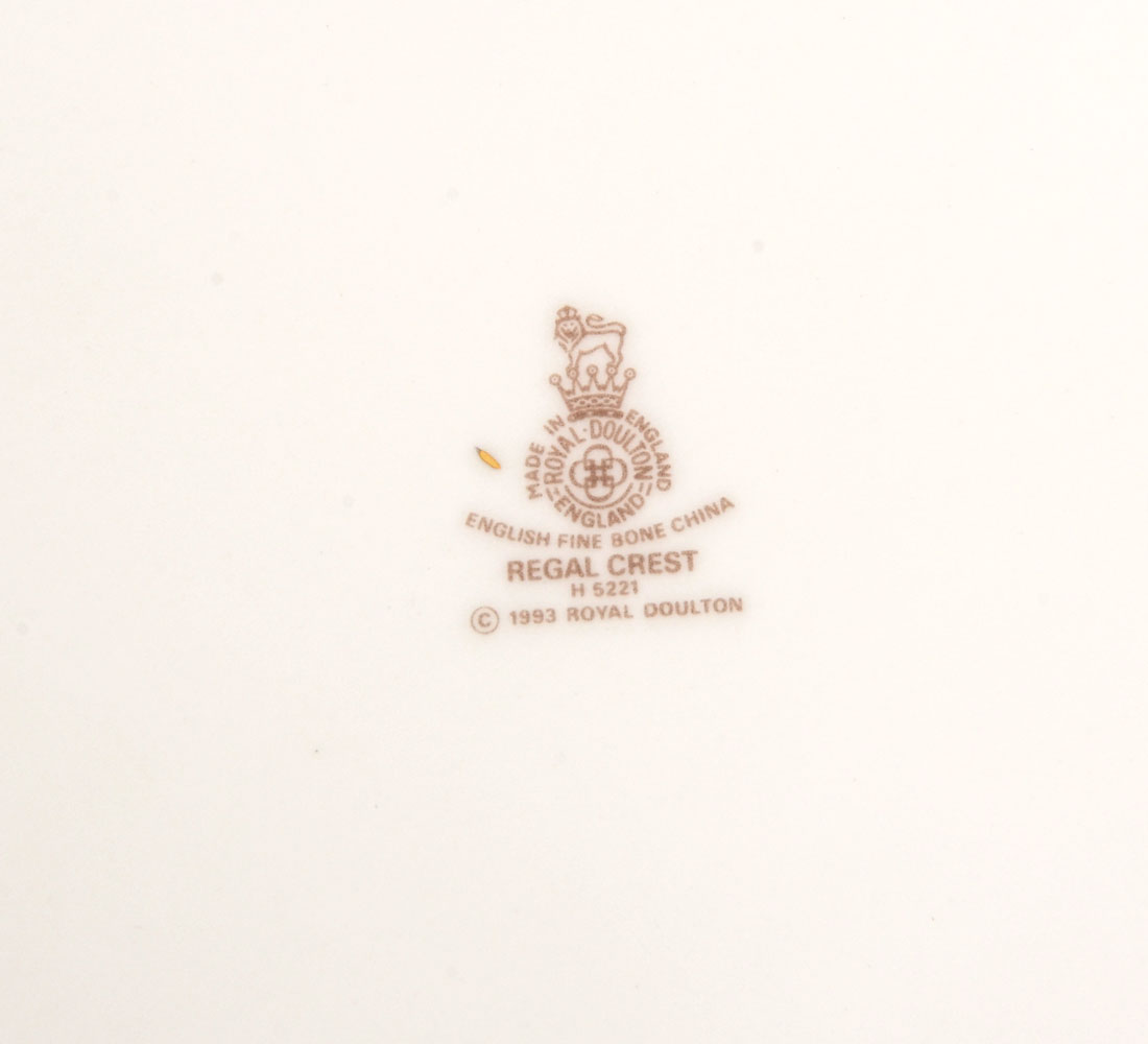 ROYAL DOULTON REGAL CREST CHINA SERVICE- Approx. 42 pieces of Royal Doulton Regal Crest pattern china to include 6 dinner plates(11''), 6 salad plates ''(8''), 6 bread & butter plates (7''), 6 soup bowls (8.5''), 4 oval serving platters (13.5''), 6 teacups & saucers, 1 cream and 1 sugar.