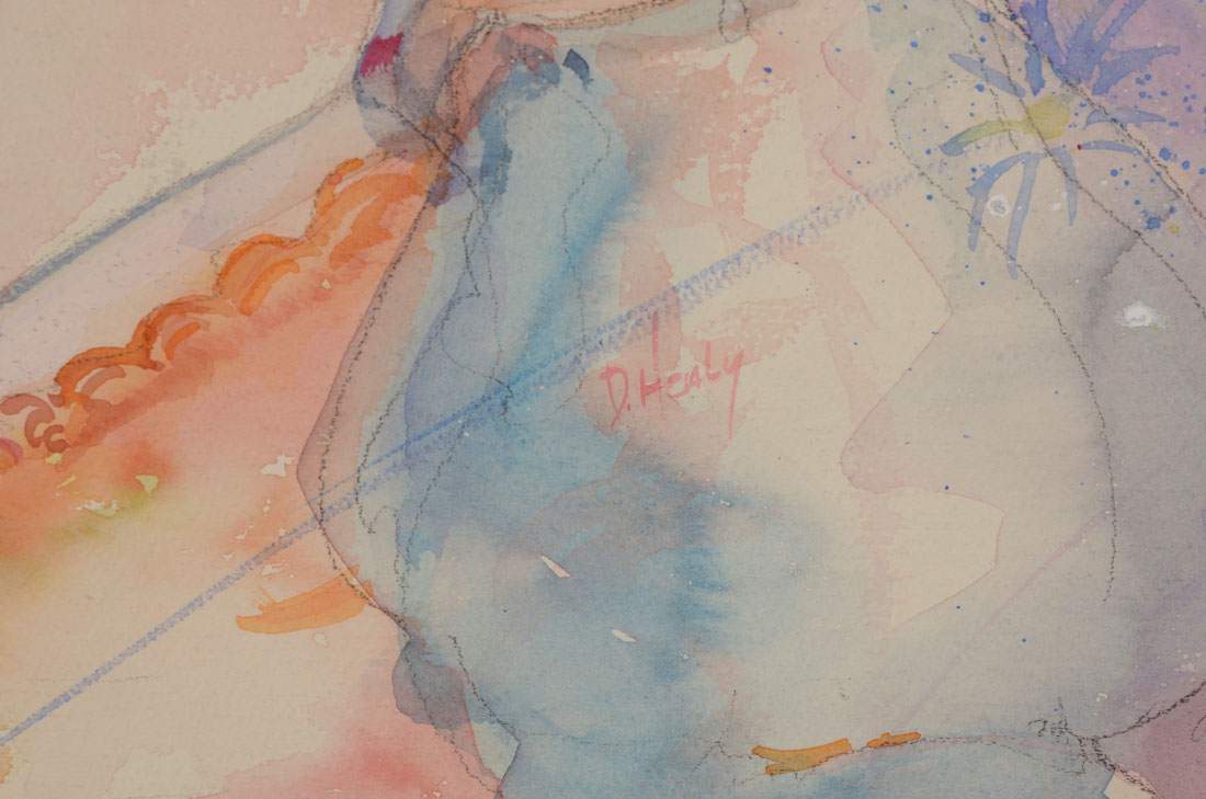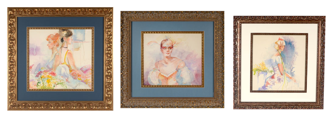 THREE LARGE DEBRA HEALY WATERCOLOR PAINTINGS: ''Titiana'', sight size is 18'' x 21'', signed lower right, fine custom framing is 34.50'' x 37''. 2) ''Two Women'', sight size is 21.50'' x 22'', signed lower right, fine custom framing is 37'' x 38''. 3) ''Back of Woman'', sight size is 20'' x 19.50'', signed lower right, fine custom framing is 34.50'' x 34''.