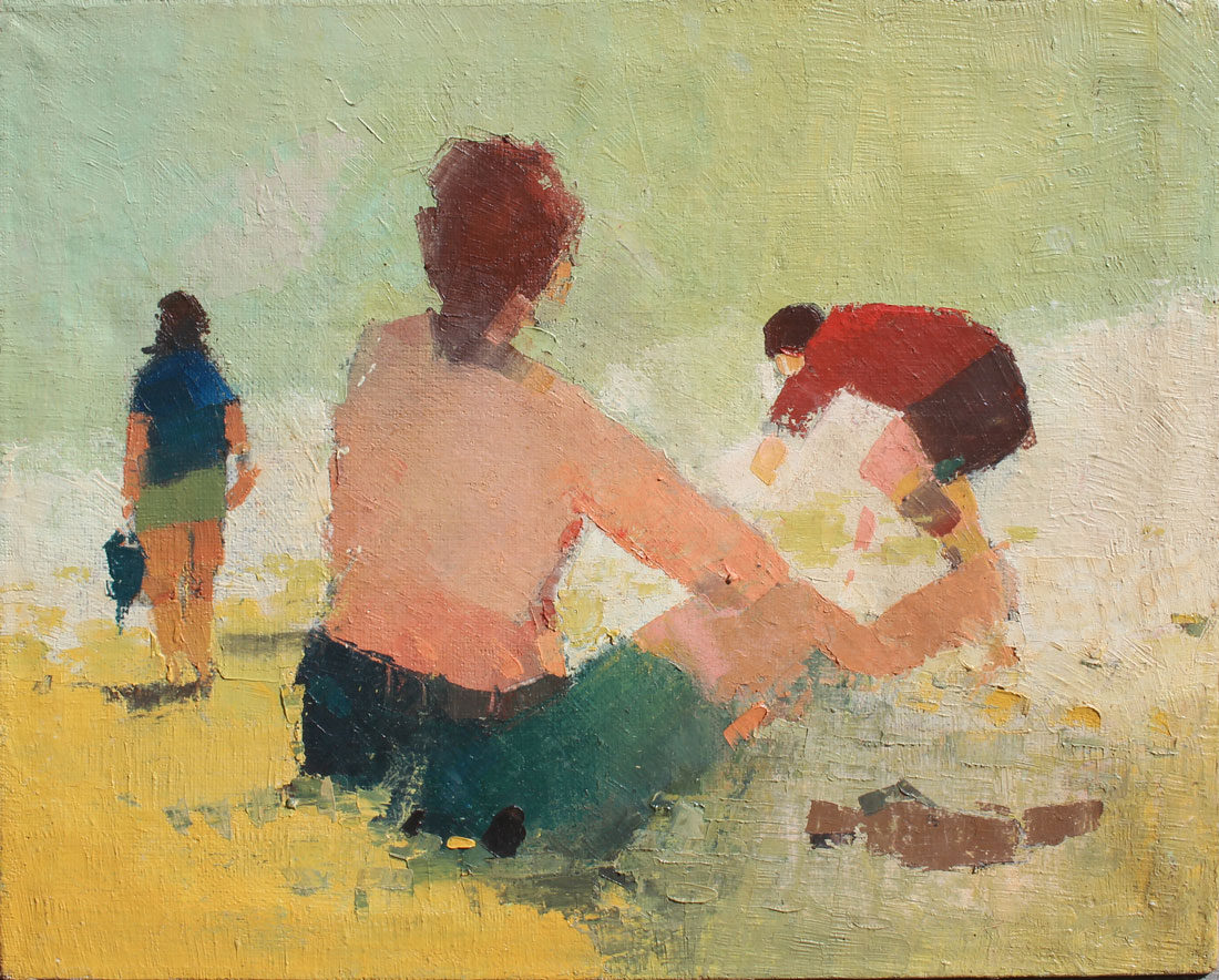 MODERNIST BEACH PAINTING WITH FIGURES: Oil/Canvas, sight size is 24'' x 30'', illegibly signed lower right, unframed.