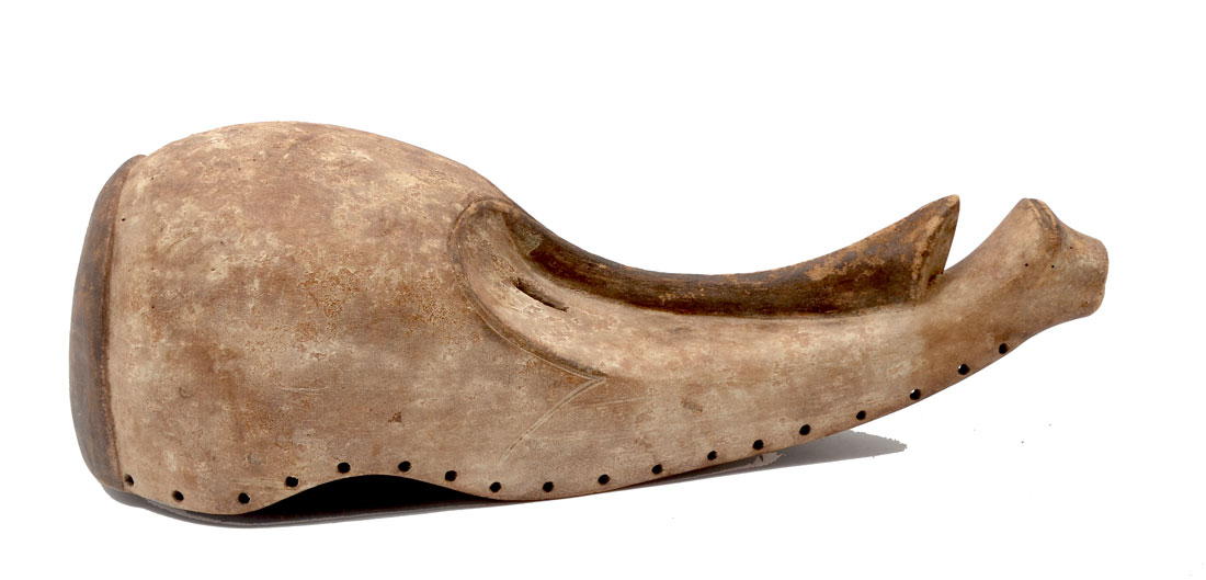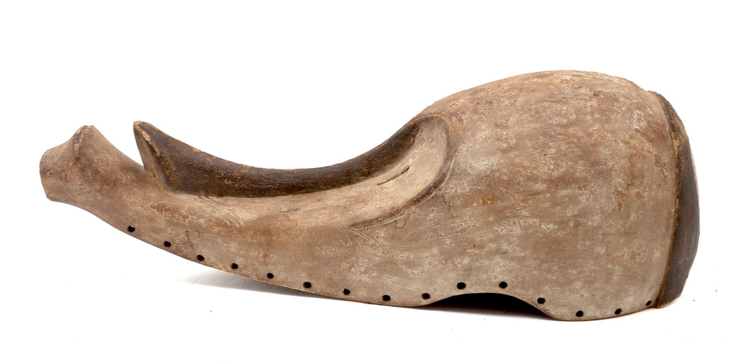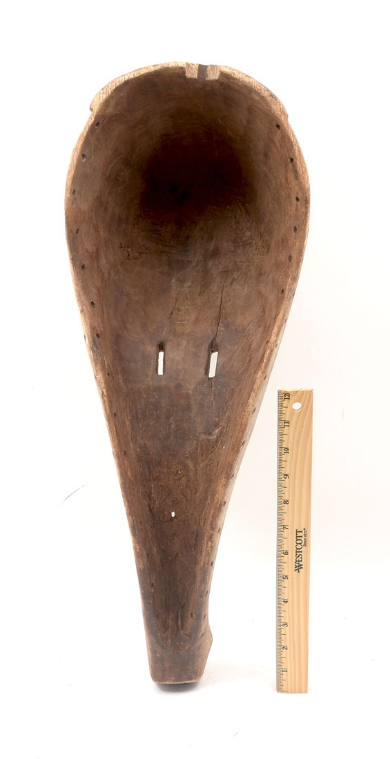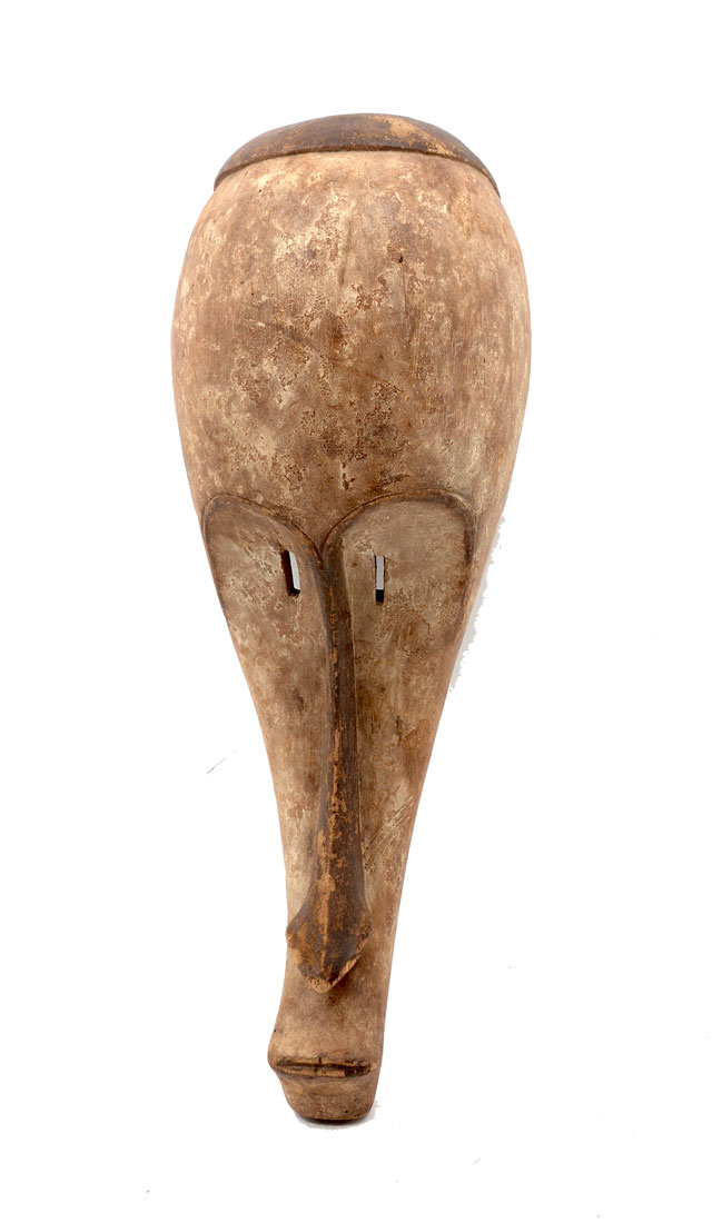 CENTRAL AFRICAN FANG CARVED MASK: Carved wood elongated face mask, Fang culture, Equatorial Guinea, 22'' h. x 8'' x 6 1/2''.