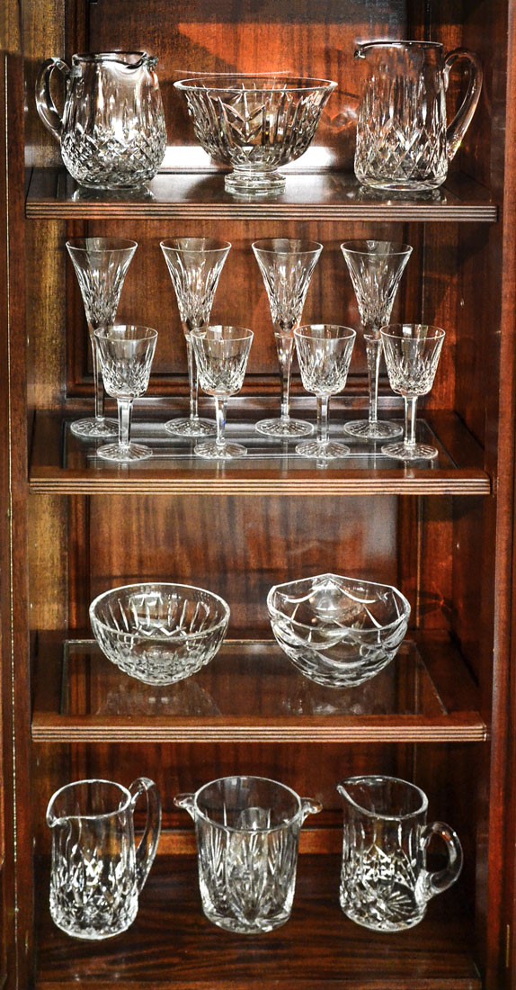16 PIECE ASSEMBLED COLLECTION OF WATERFORD CRYSTAL- 16 pieces of assorted Waterford patterns to include Lismore, Carina, Marquis and more.