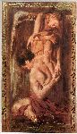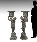 MOREAU, Mathurin, (French, 1822-1912): Nouveau Beauty Flower Girl, Bronze, 27.25'' h, signed on the base, affixed to pigeon blood red beveled marble plinth, which is attached to a beveled wooden plinth, 31.25''. CONDITION: Repaired finger. |