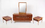108 PC. STERLING REED & BARTON ''BURGUNDY'' FLATWARE: Approx. 109.32 Troy ounces. Comprising; 12- Dinner forks, 12- Salad forks, 12- Table spoons, 16- Teaspoons, 12- Cocktail forks, 12- Dinner knives, 12- Spread knives, 2- Large serving spoons, 1- Ladle, 1- Pierced serving spoon, & 1- Pierced serving fork. 2 knives Approx. 9.25'' l. 10 knives Approx. 8.75'' l. All are by Reed & Barton and are of the ''Burgundy'' pattern. Presentation box. Approx. 3.75'' h x 16.75'' l x 11.5'' w. CONDITION: Presentation box has veneer issues, wear consistent with age and use. |