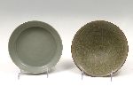 GRECO-ROMAN SMALL PORTRAIT PLATE: Fine Apulian Greco-Roman footed plate having a lady of fashion in formal dress with an encompassing scrolling & stylized foliate design. Approx. 1.25'' h x 6.25'' w. Collection of Harvey Rothenberg. CONDITION: Small chip at rim, wear consistent with age and use. |