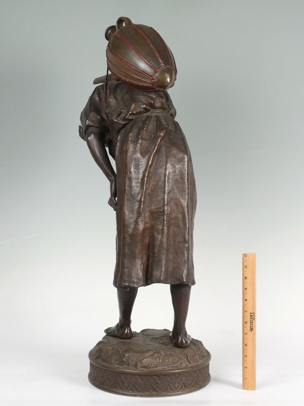 HOTTOT, Louis, (French, 1829-1905): Orientalist Water Carrier, Patinated Bronze, 33.50'' in height, signed on the base, a fine and monumental example.