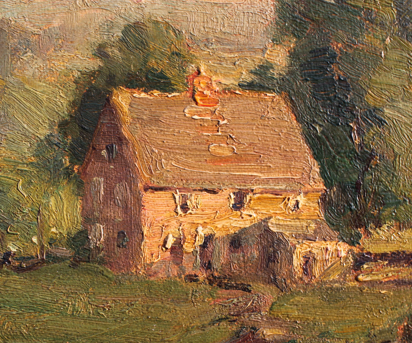 BICKNELL, Frank, (American, 1866-1943): ''Ms. Sander's House, Grassy Hill - Lyme, Conn'', Oil/Canvas Board, 8'' x 10'', signed lower right, signed and titled verso, framed 10.50'' x 12.50''.