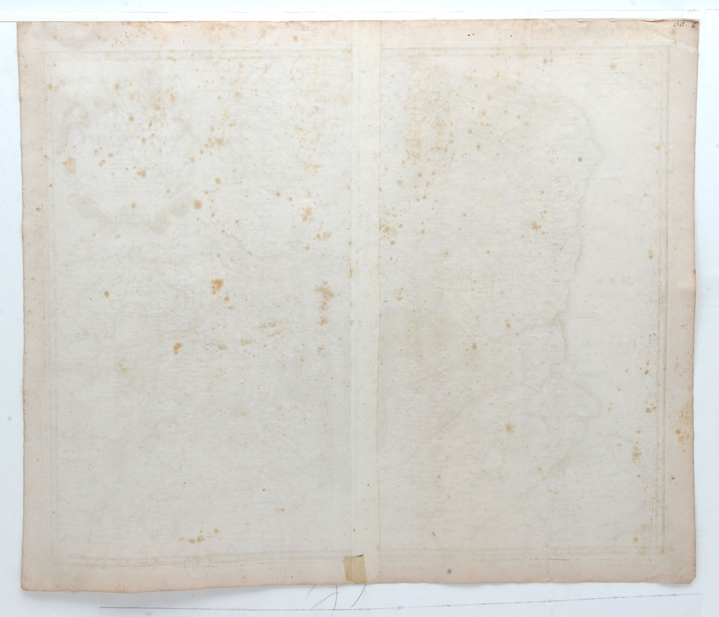CONDITION: Foxing, loss at edges, crease & seamed in center. Condition same for both.