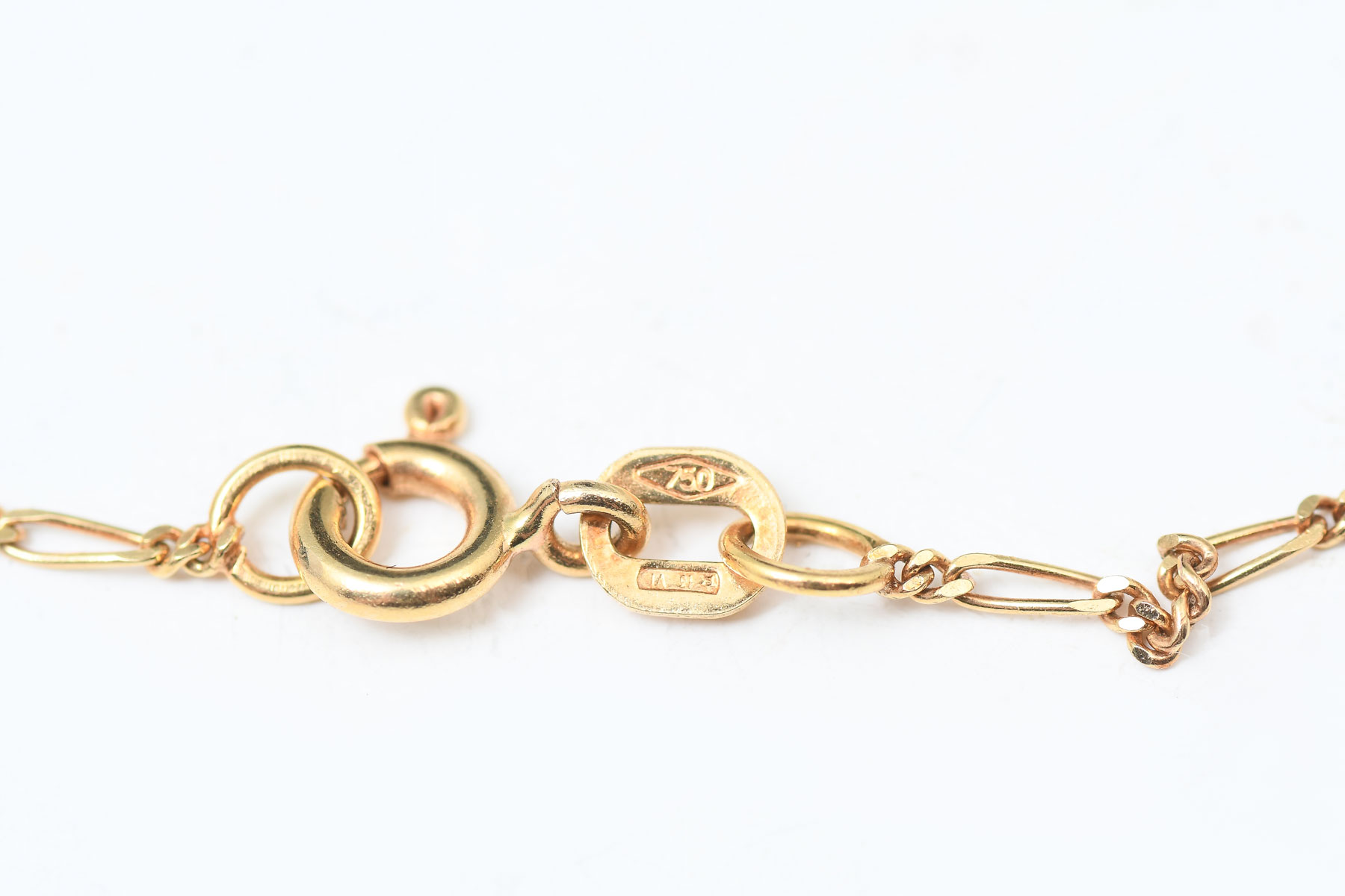 14K FILIGREE SAPPHIRE & PEARL PENDANT/NECKLACE: Ca 1906 14K yellow gold filigree pendant features a synthetic blue sapphire accented with 6 2-3mm cultured pearls sold with 16'' Italian figaro link chain. Pendant measures 2'' from the top of the bale and .5' w. Total weight 5.75 grams.