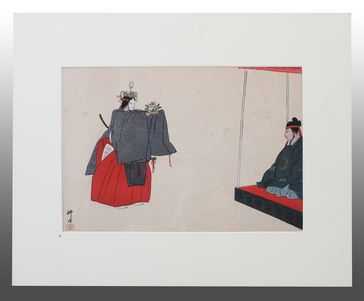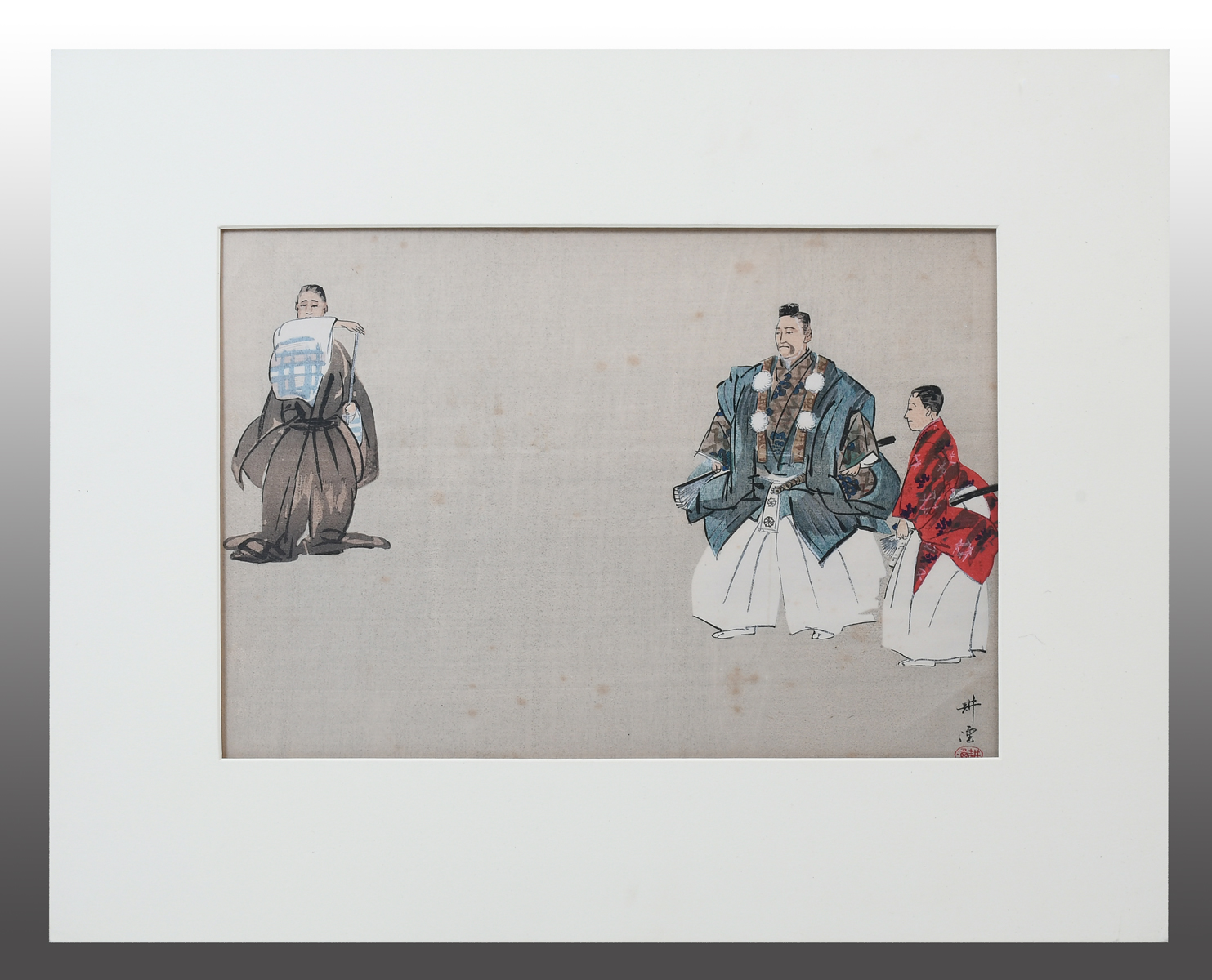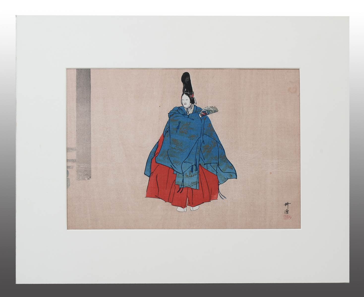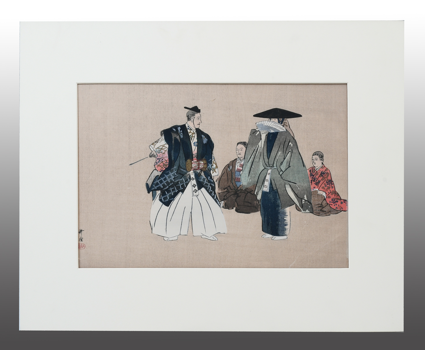 FOUR KOGYO JAPANESE WOODBLOCK KABUKI PRINTS: Sight size 9.5'' x 14'', matted but not framed, 16.25'' x 20.25''.