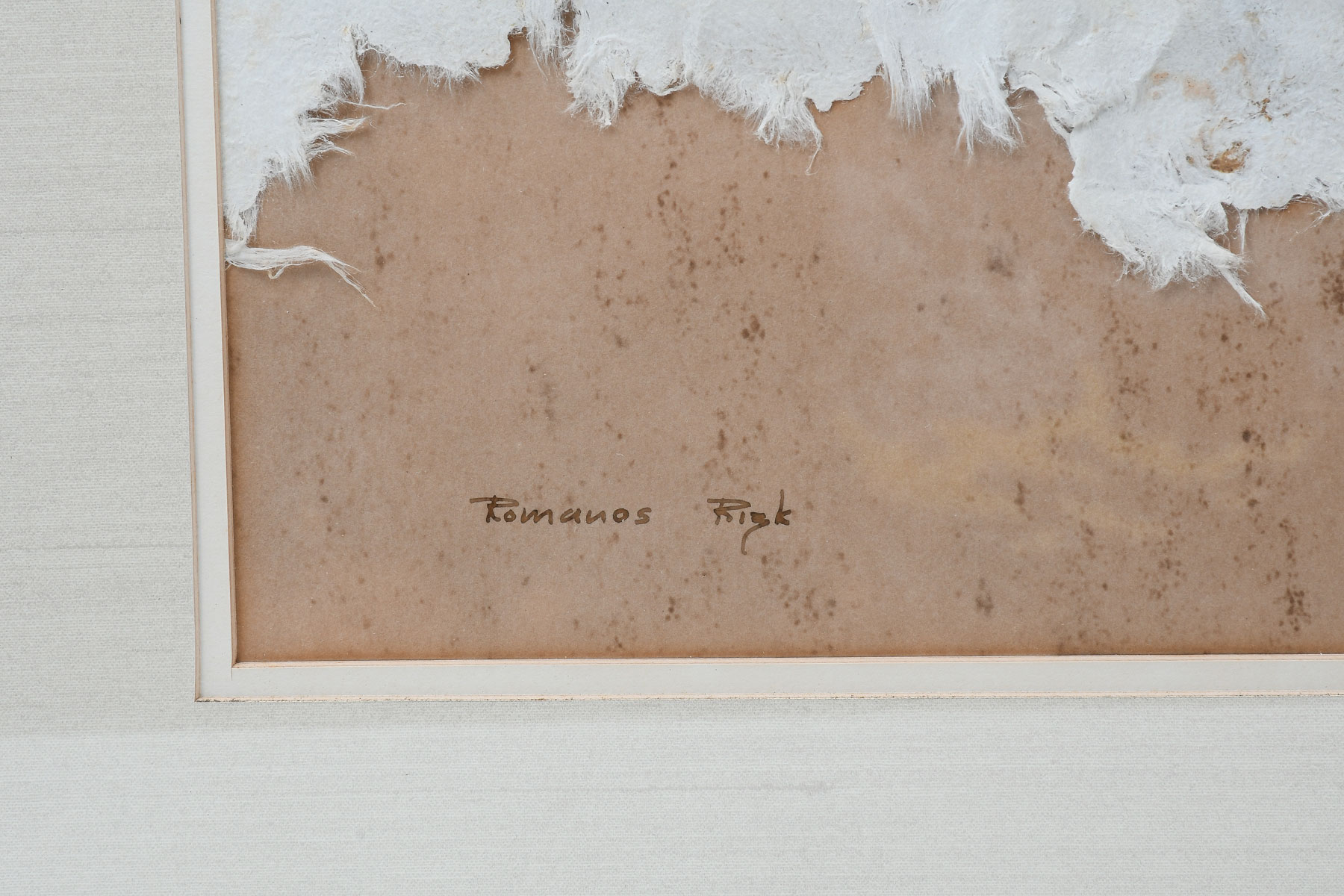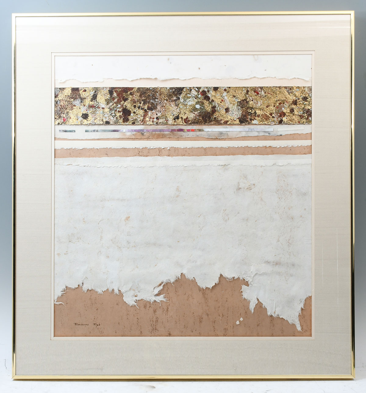 RIZK, Romanos, (American, 1927-2009): ''One with the Tao #704'', Acrylic, Polymer, and Collage, 29.25'' x 31.25'', signed lower left, old label affixed verso with price tag of $1900, also signed and titled verso, framed, 31.5'' x 29.25''.