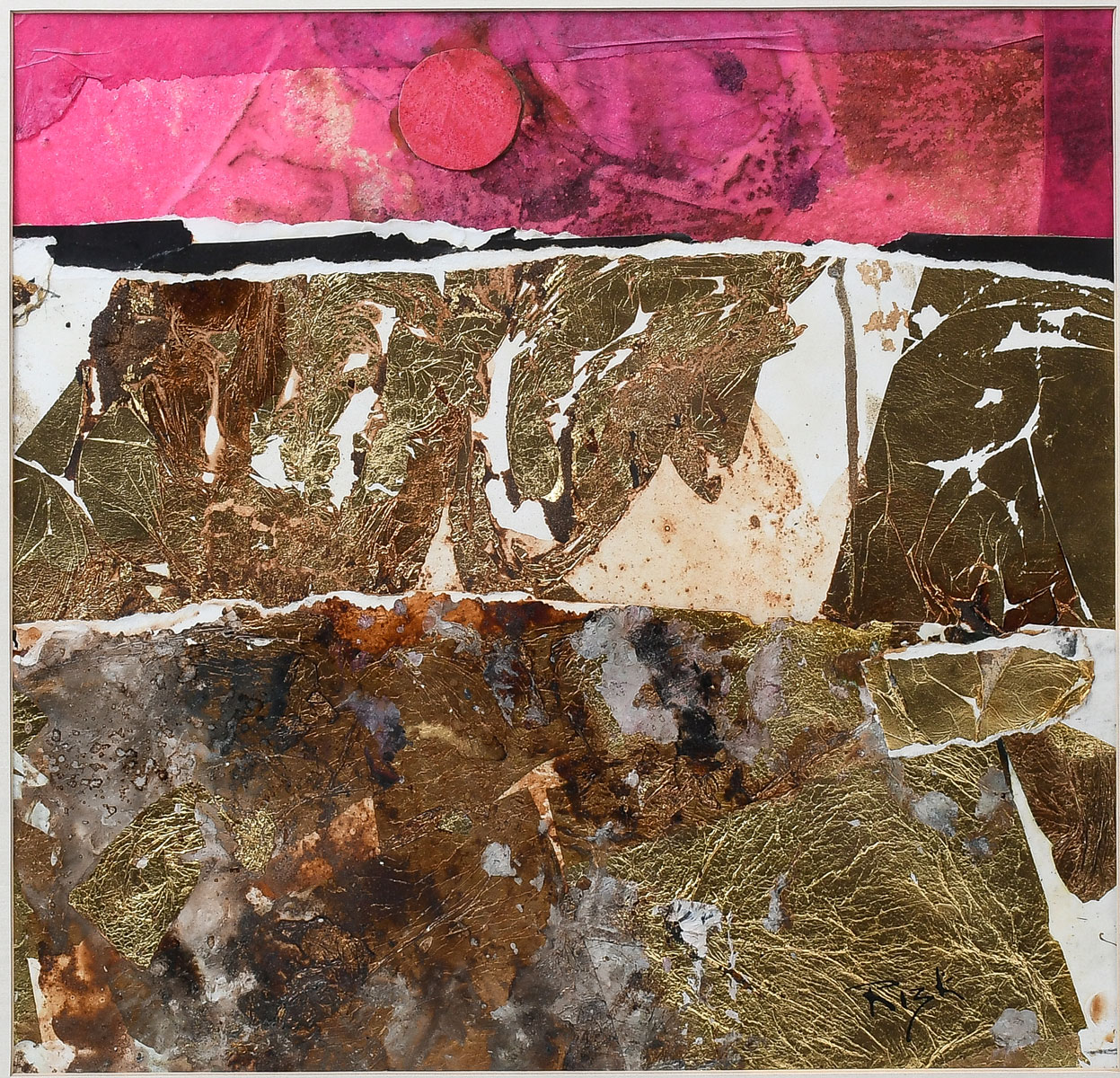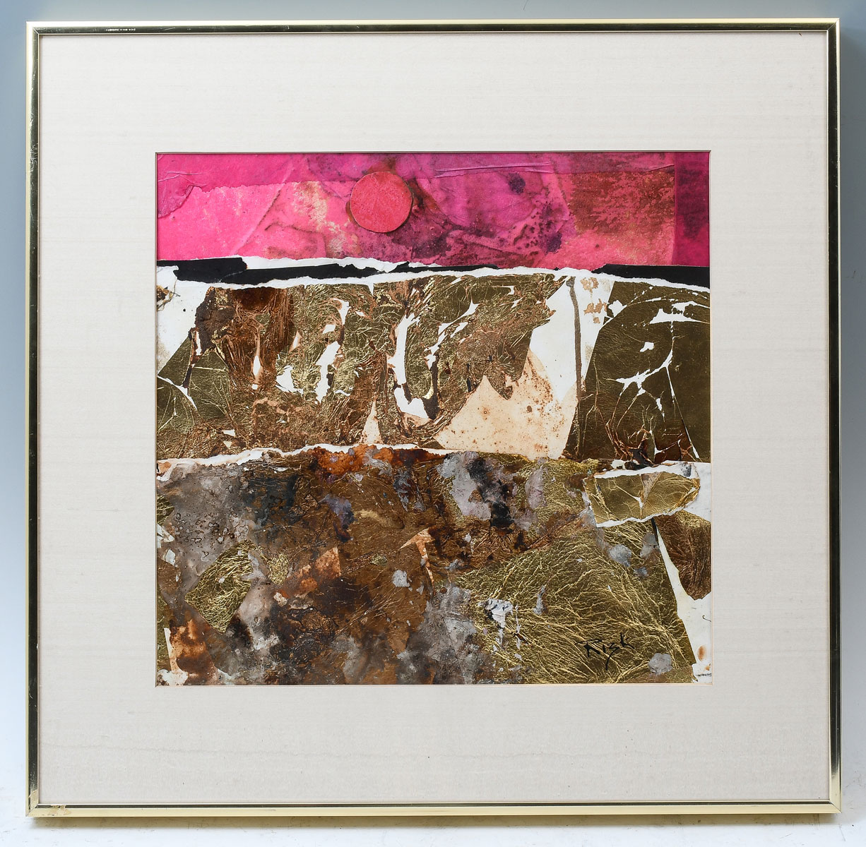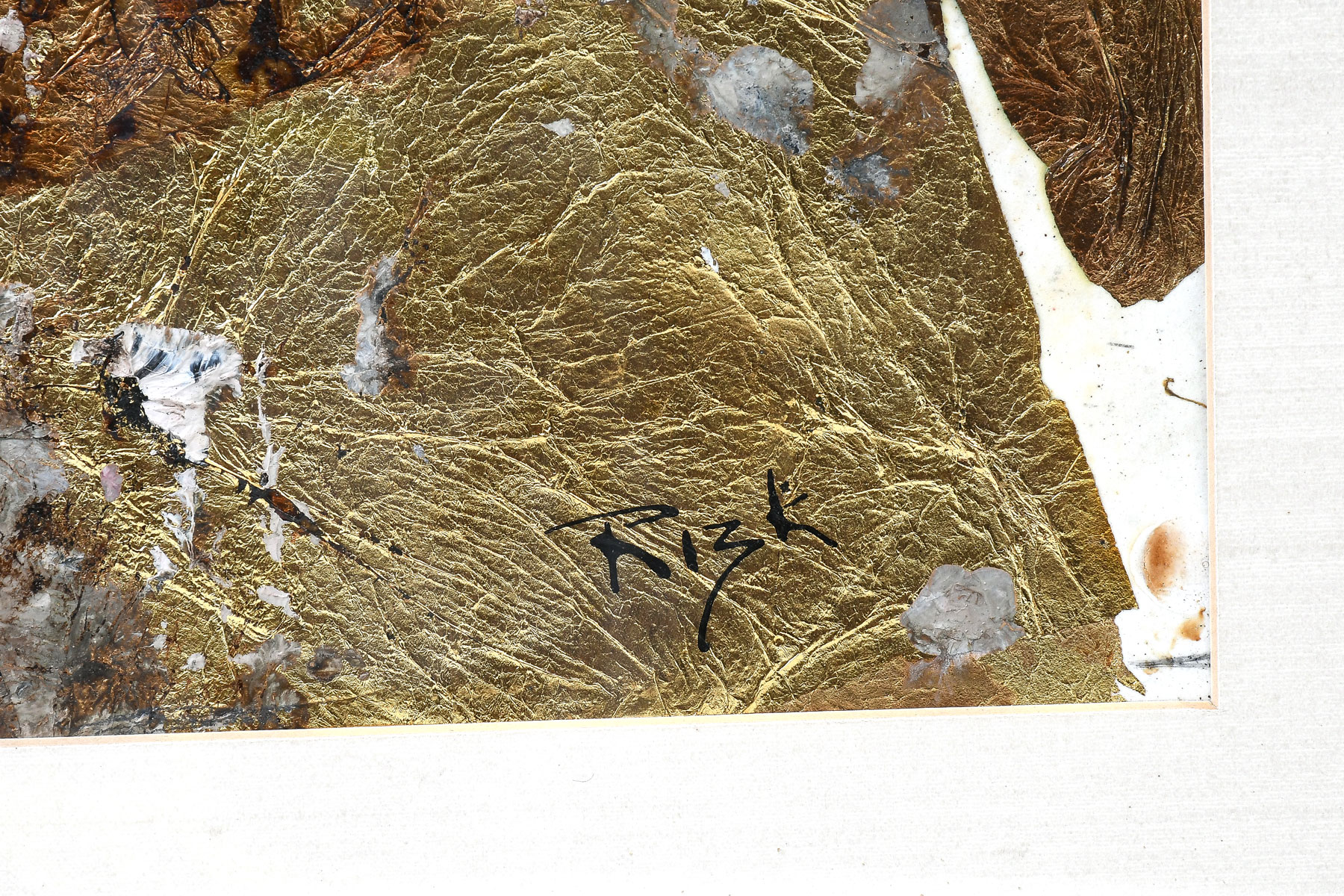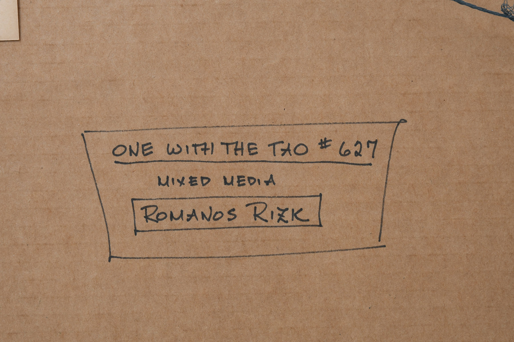 RIZK, Romanos, (American, 1927-2009): ''One with the Tao #627'', Acrylic, Gold, and Silver Leaf, 18.75'' x 19.25'', signed lower right, framed, 18.75'' x 19.25''. Original label affixed verso with price tag of $600, also signed and titled verso.