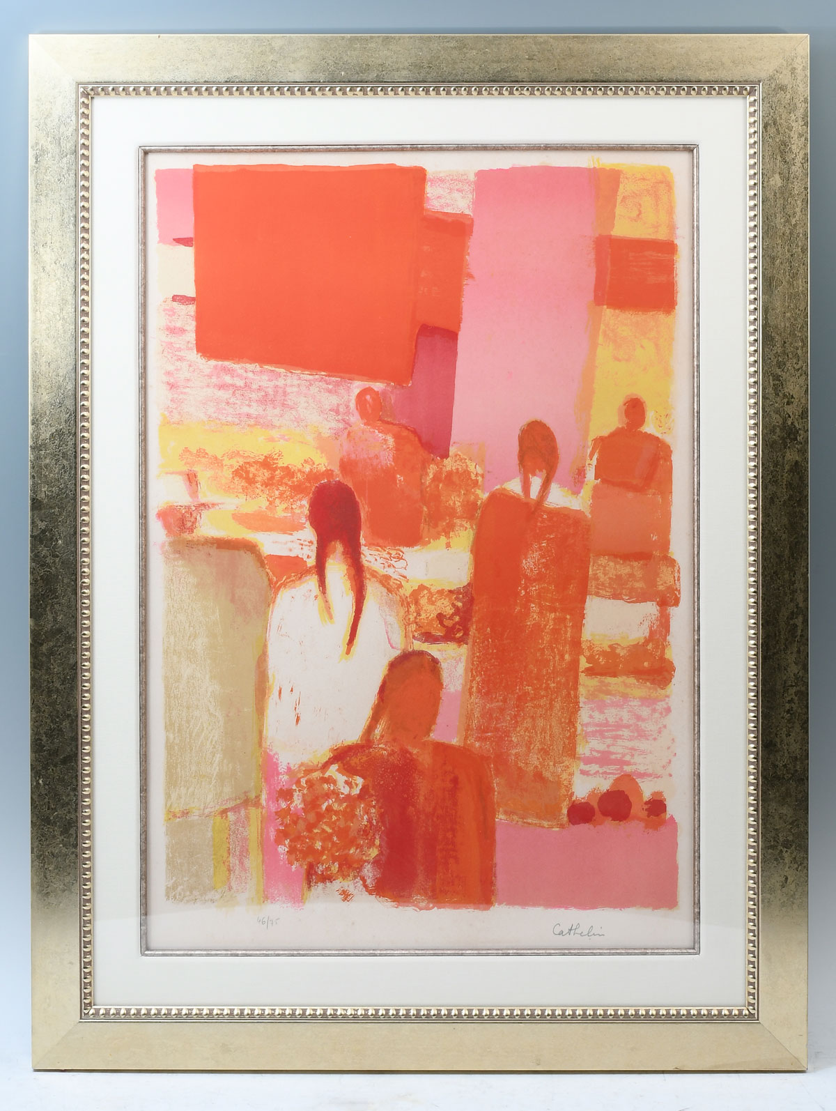 CATHELIN, Bernard, (French, 1919-2004): Abstract Composition with Figures, Lithograph, sight size 26'' x 18'', signed lower right, numbered 46/75 lower left, framed, 34'' x 25.75''.