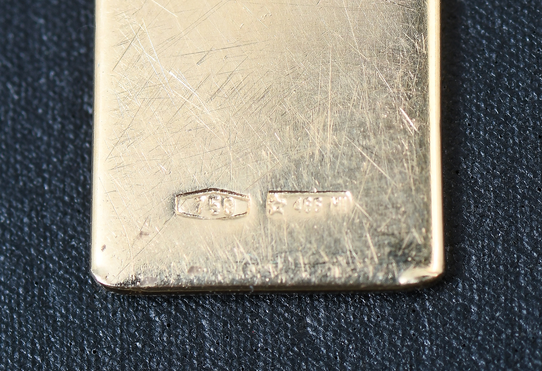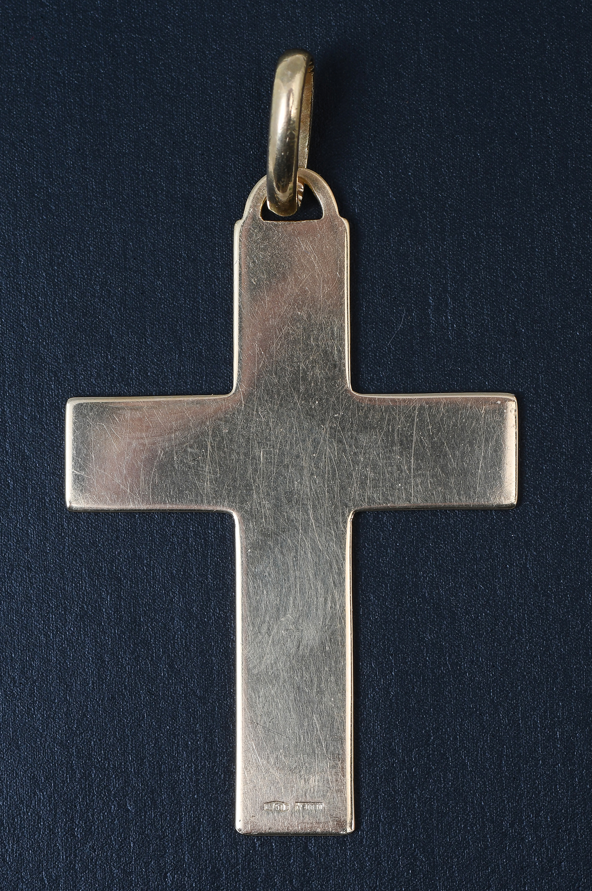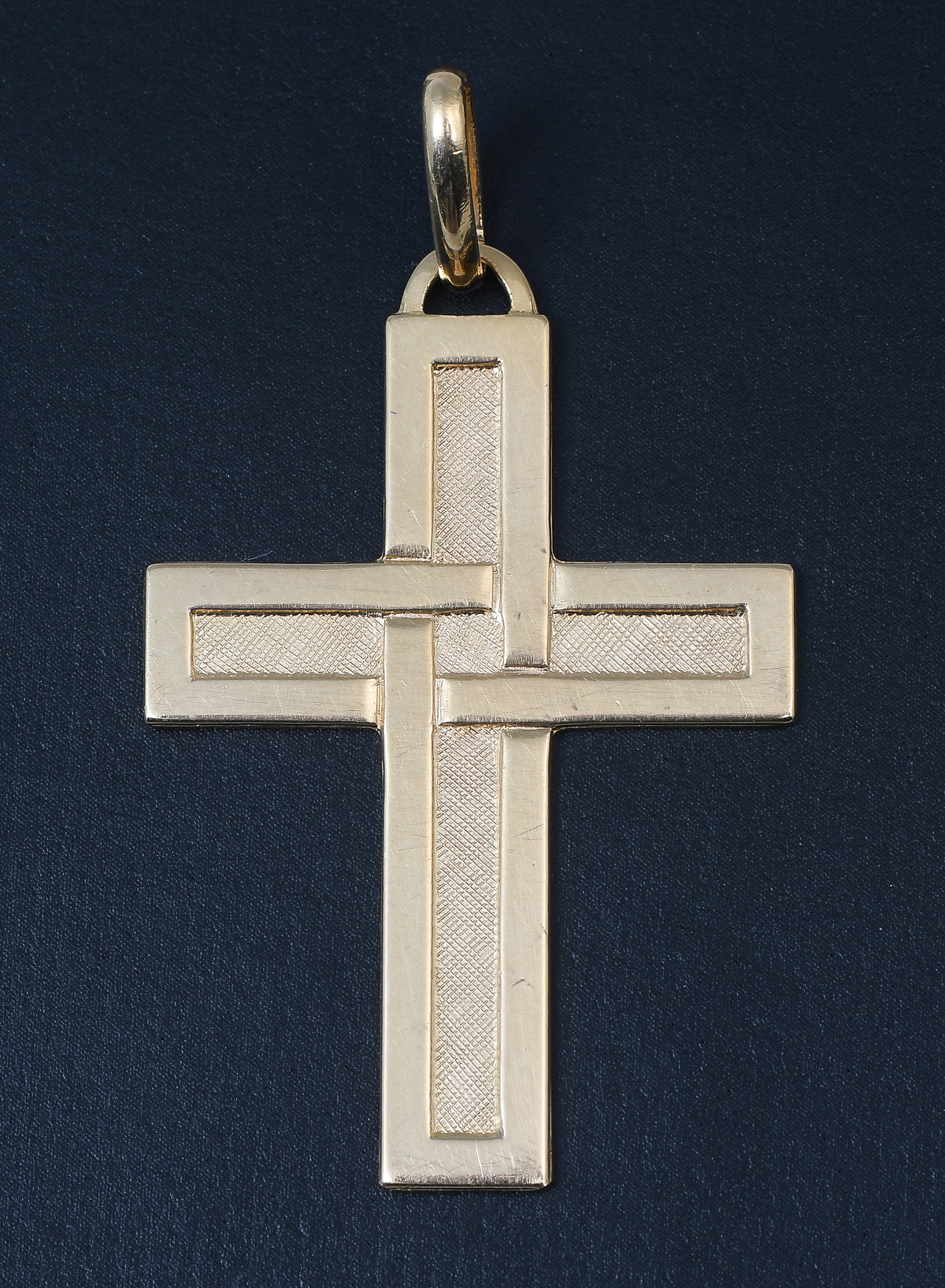 VINTAGE 18K CROSS PENDANT: 18K yellow gold '50s pendant cross measures 1'' h x .5'' w. Total weight approx 5.73 grams. Est. $700/1200**