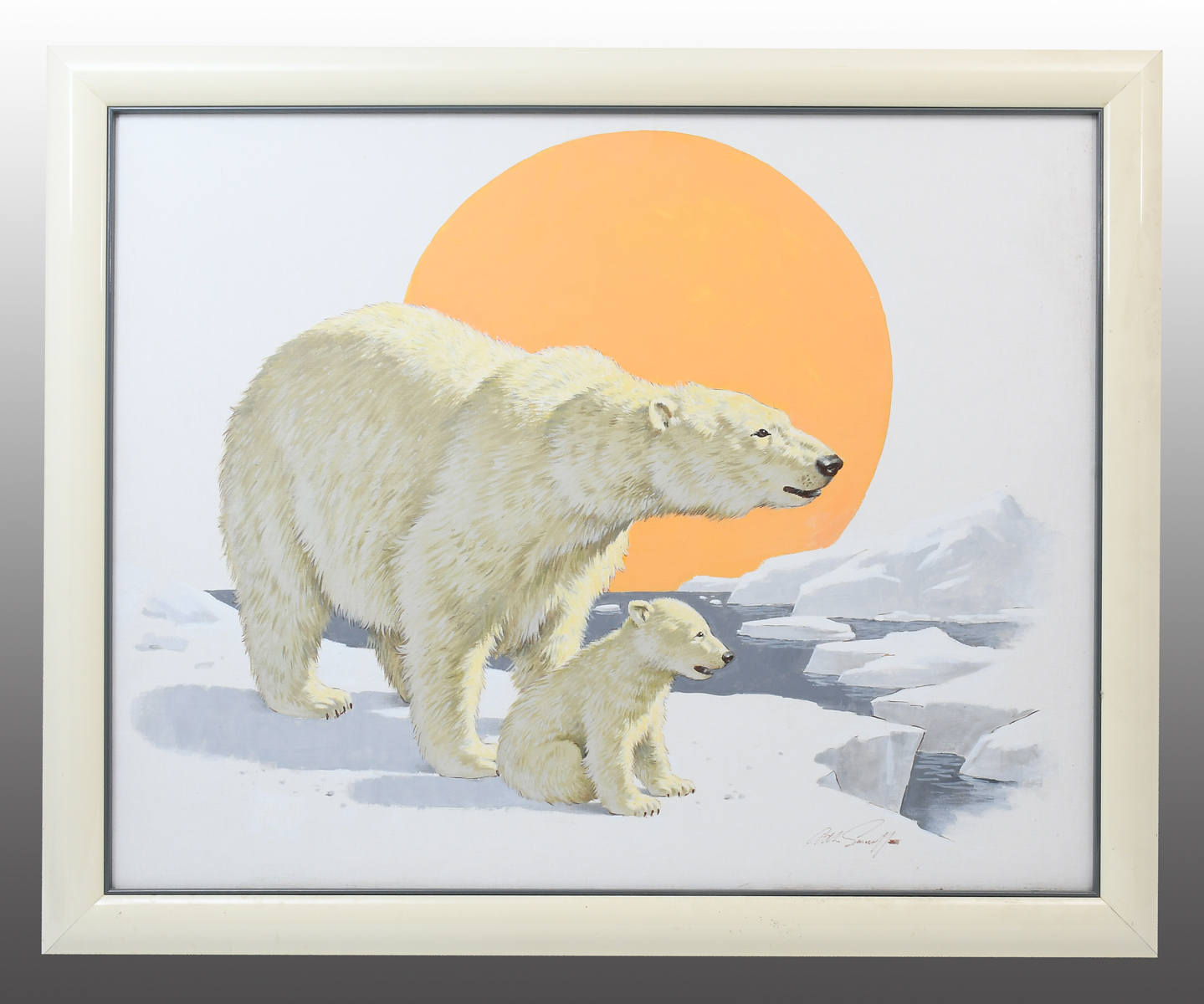 SARNOFF, Arthur, (American, 1912-2000): Polar Bear with Her Cub, Oil/Board, 24'' x 30'', signed lower right, framed, 27.5'' x 33.25''. Est. $1500/2500**