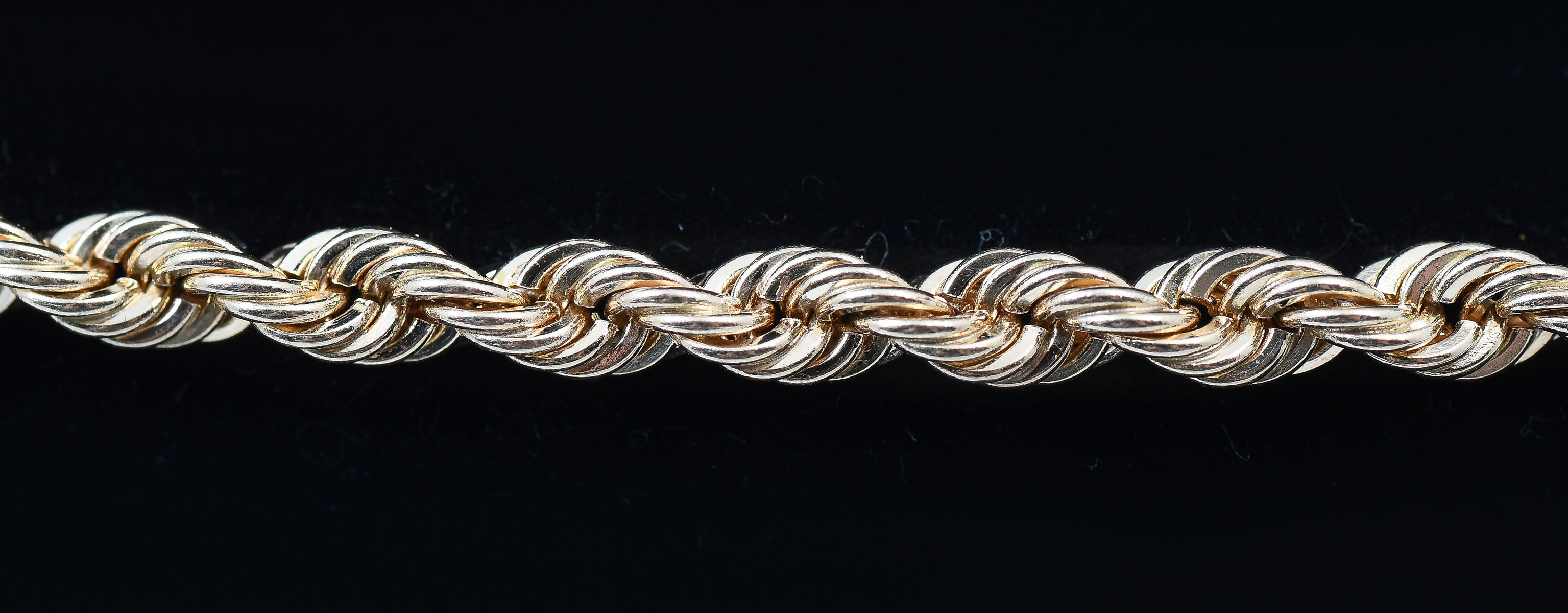 14K 3.5MM ROPE CHAIN: Classic 14K yellow rope necklace is 3.5mm, 18'' long and weighs approx 10.50 grams. Est. $1200/1800**