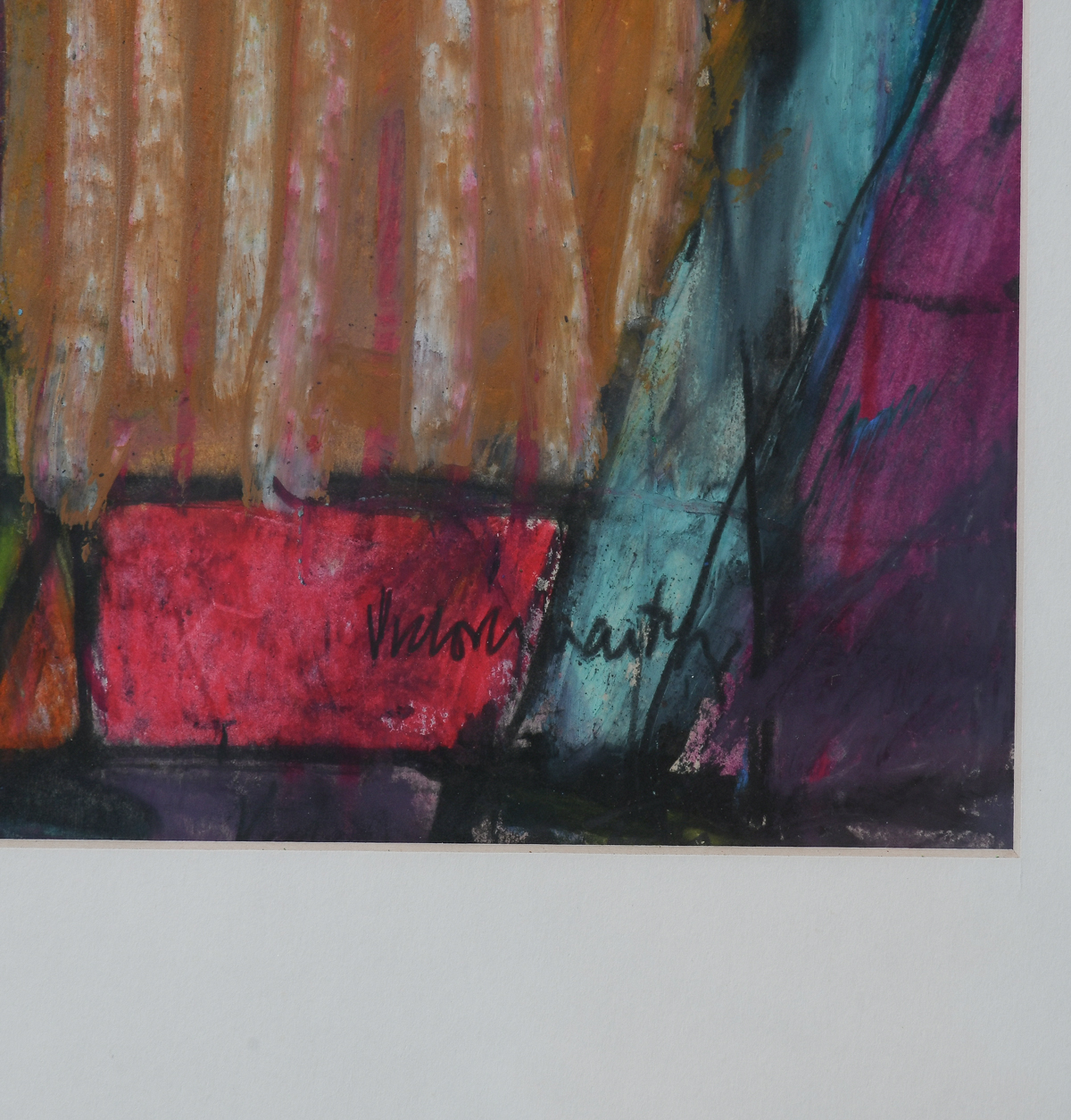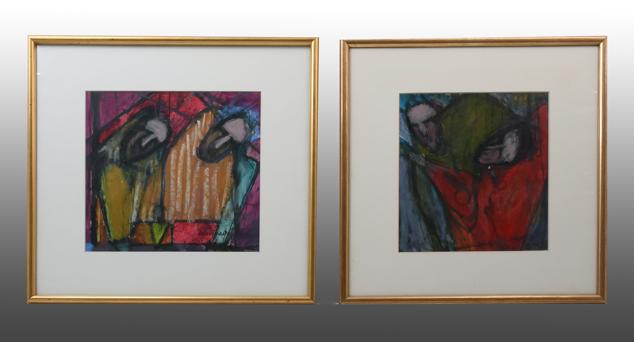 MARTINEZ, Victoria, (American/Mexican, Contemporary): Two Oils/Paper: 1) ''Silent Echo'', 10'' x 10'', signed lower right, label affixed verso, dated 1993, framed, 17'' x 17''; 2) ''The Dance'', 10'' x 8'', signed lower right, label affixed verso, framed, 17'' x 15.75''.