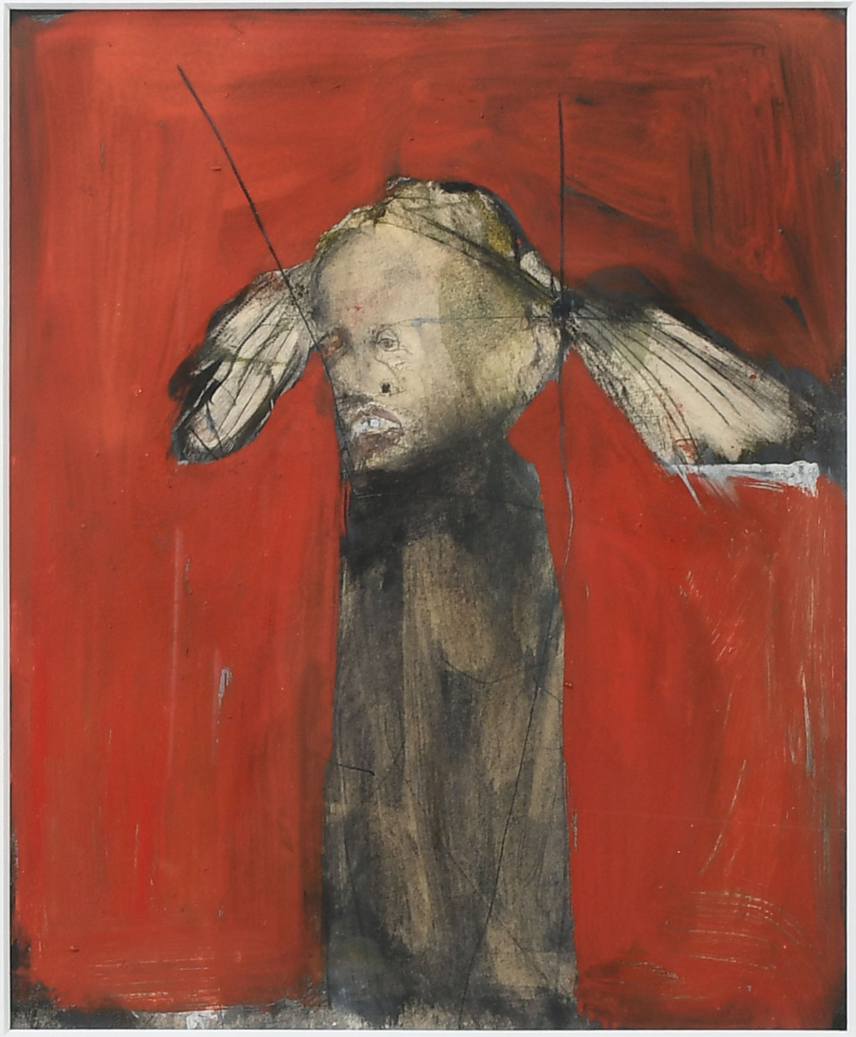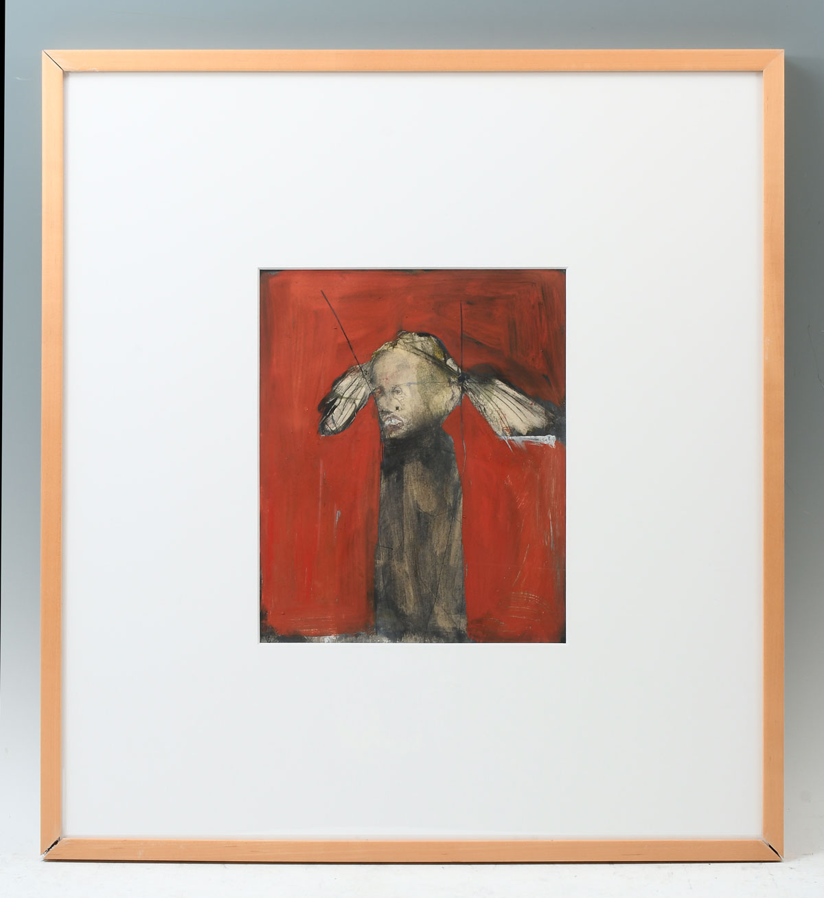 MARTINEZ, Victoria, (American/Mexican, Contemporary): ''Pigtails in Red'', Mixed Media, sight size 11'' x 9'', framed, 24.25'' x 22.25''.