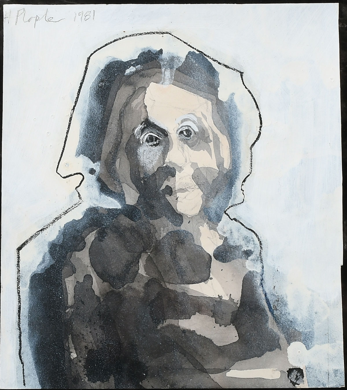 PLOPLE, Harold, (21st Century): ''Waiting'', Gouache, 8.5'' x 7.5'', signed upper left and dated 1981, framed, 15.5'' x 14.75''. Label affixed verso reads: ''This art is in the custody of Narsad Artworks.''
