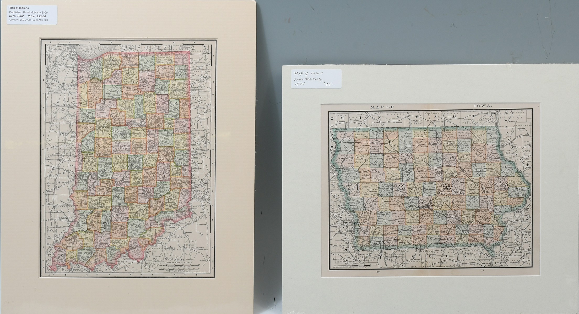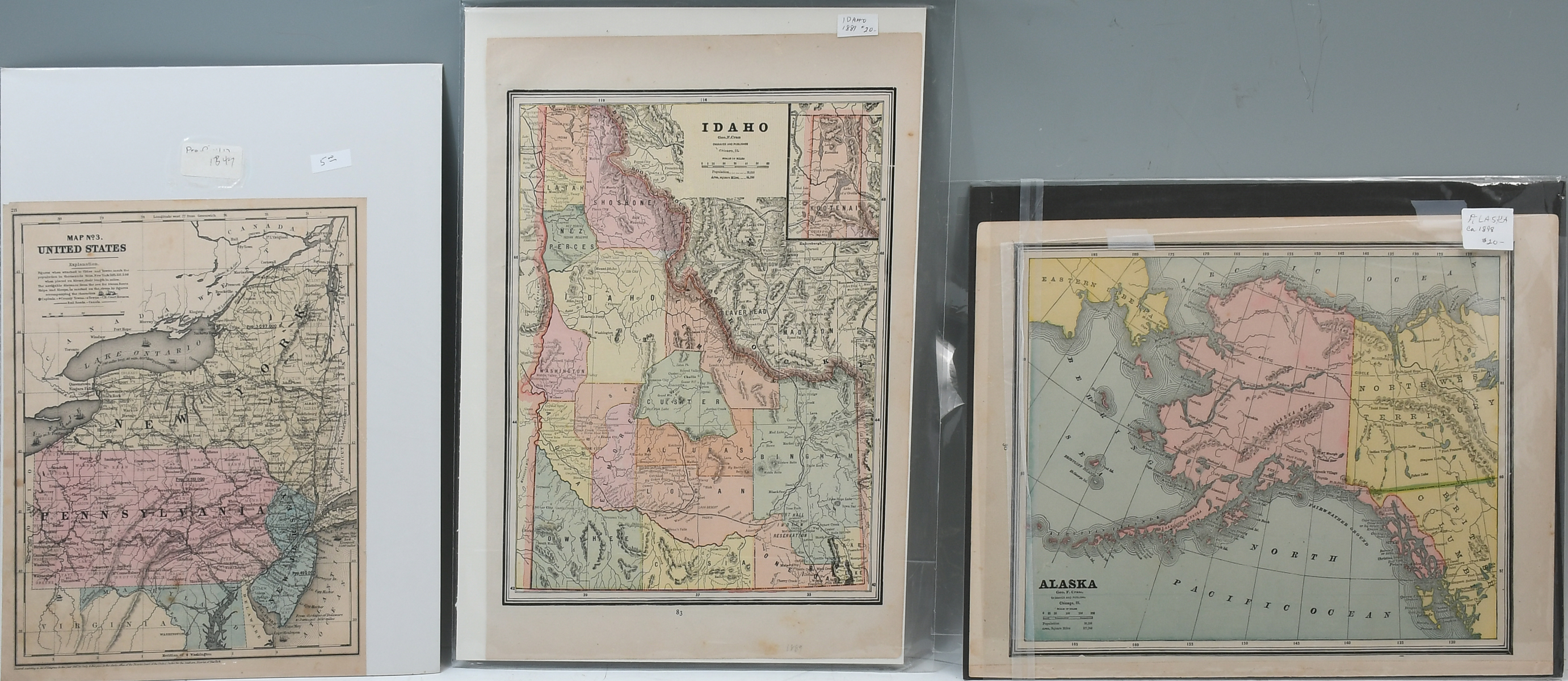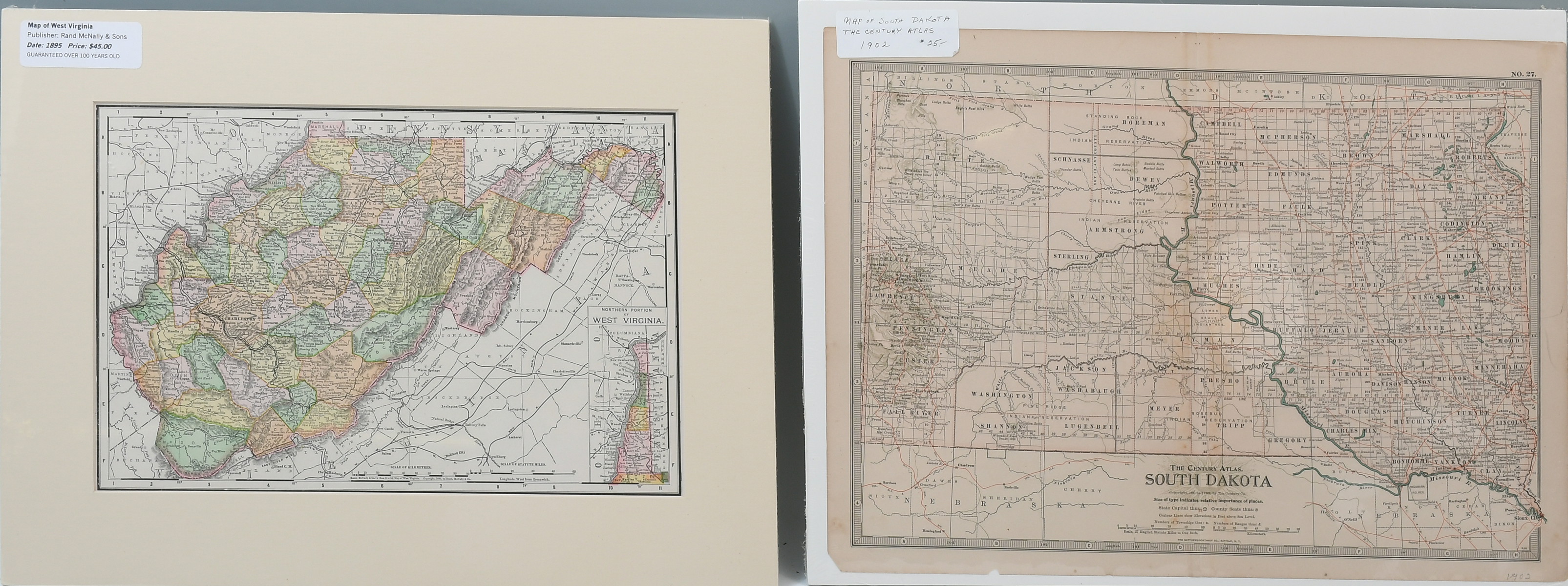23 PC. UNITED STATES MAP COLLECTION: Comprising; Individual state maps, mostly circa 1890. 2 are framed and the rest are in sealed plastic with matting. Largest Approx. 22'' h x 16'' w.
