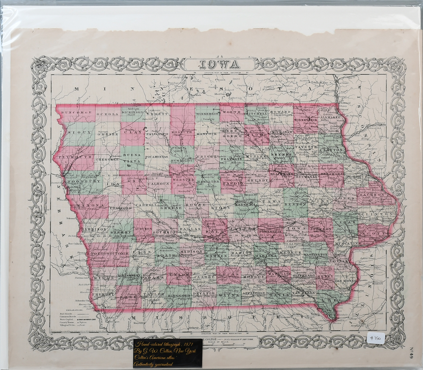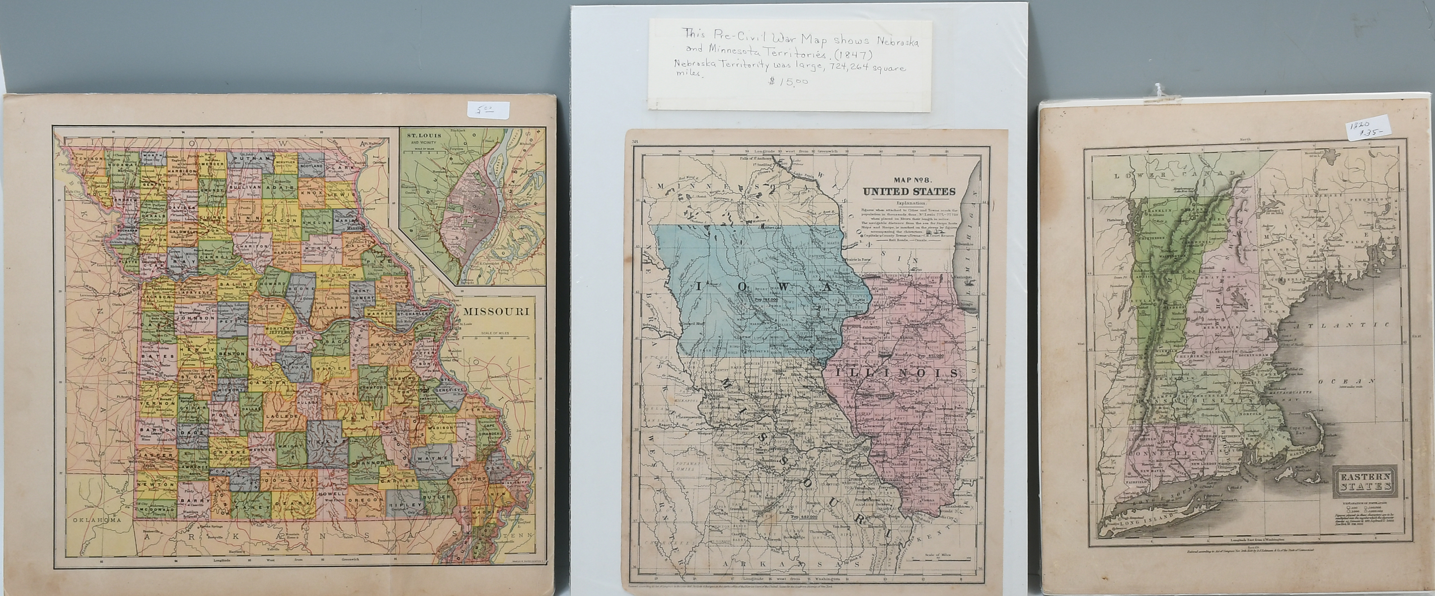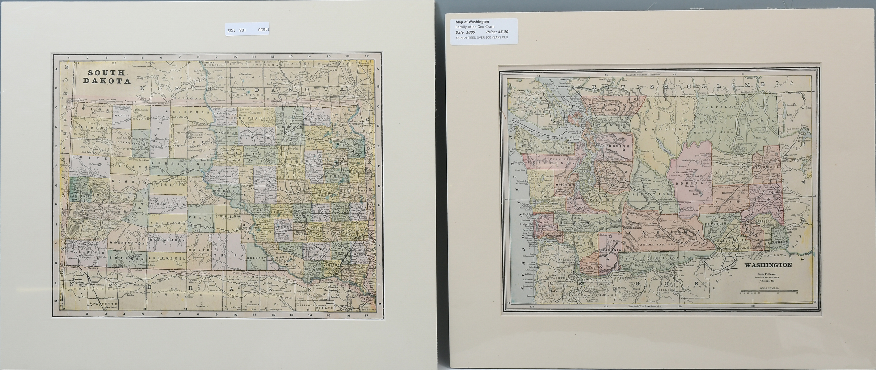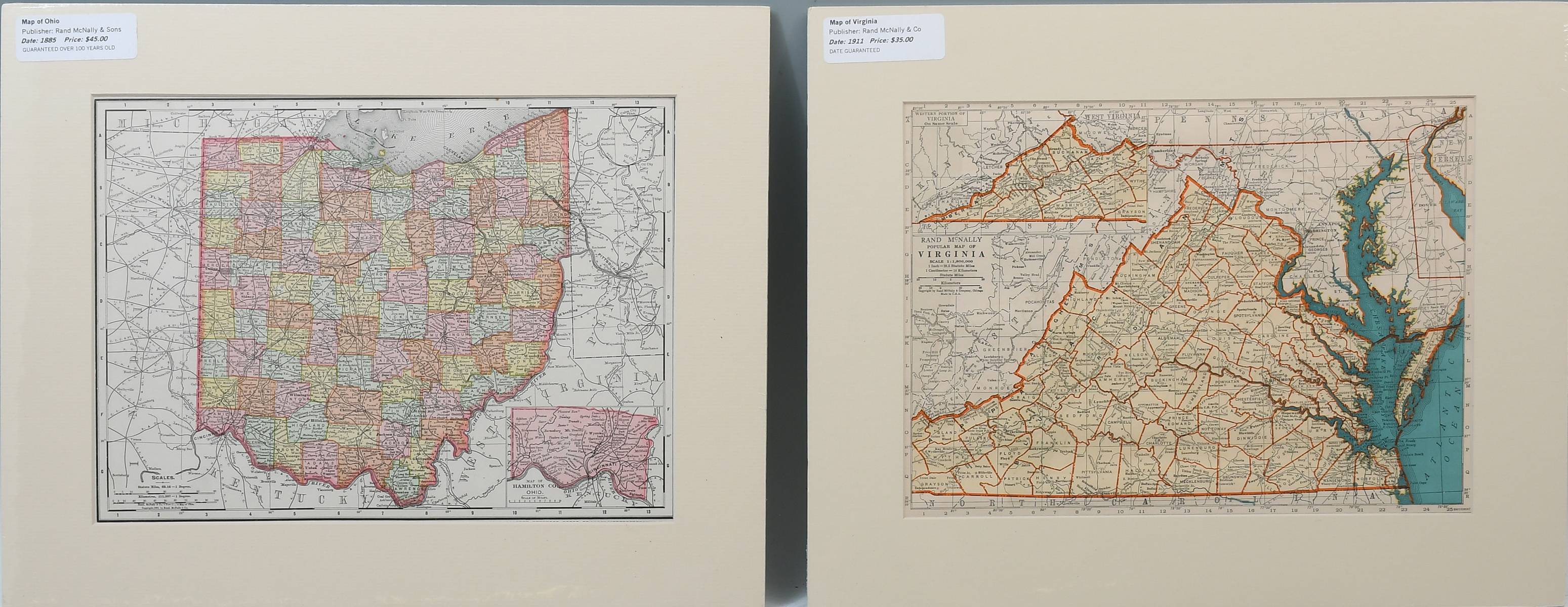 23 PC. UNITED STATES MAP COLLECTION: Comprising; Individual state maps, mostly circa 1890. 2 are framed and the rest are in sealed plastic with matting. Largest Approx. 22'' h x 16'' w.