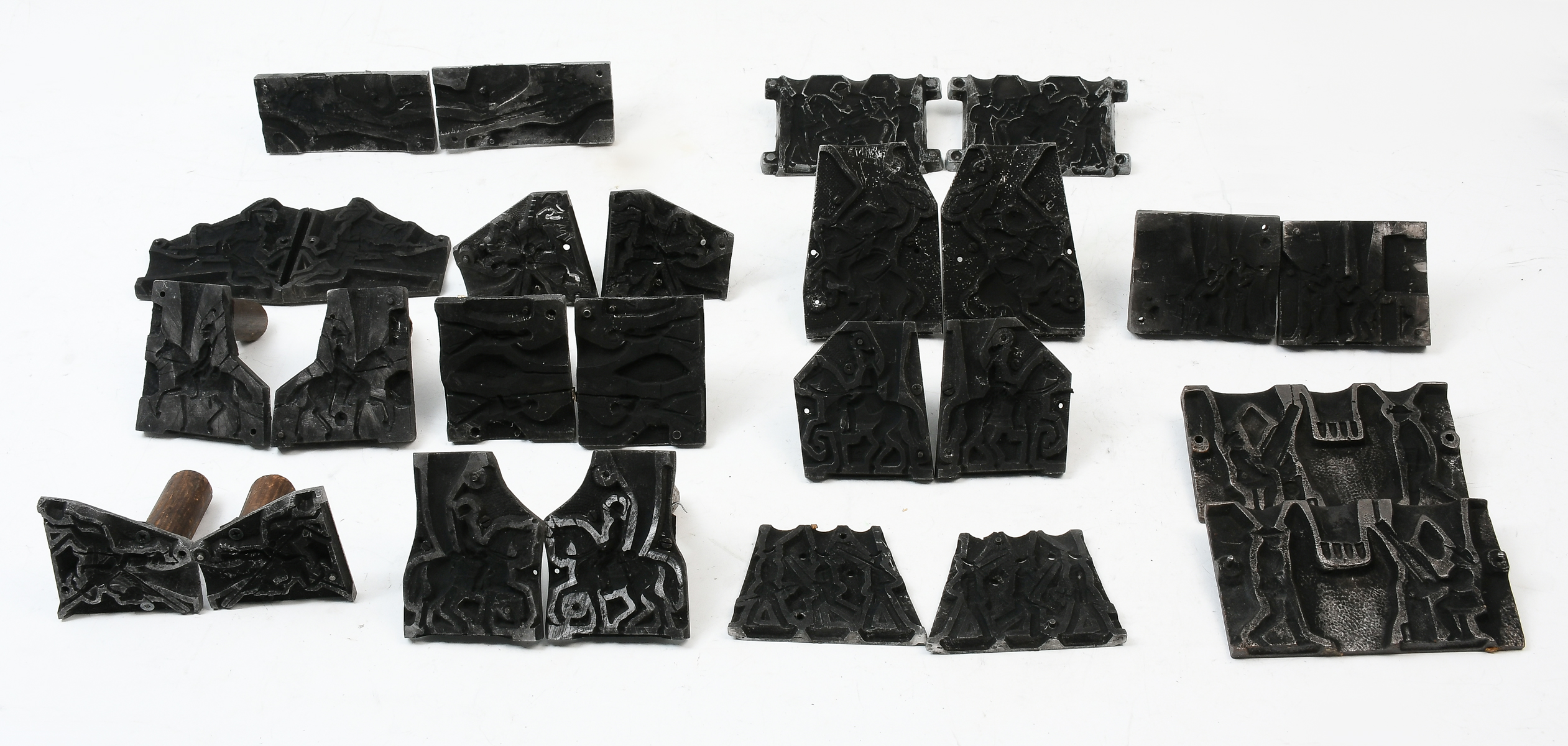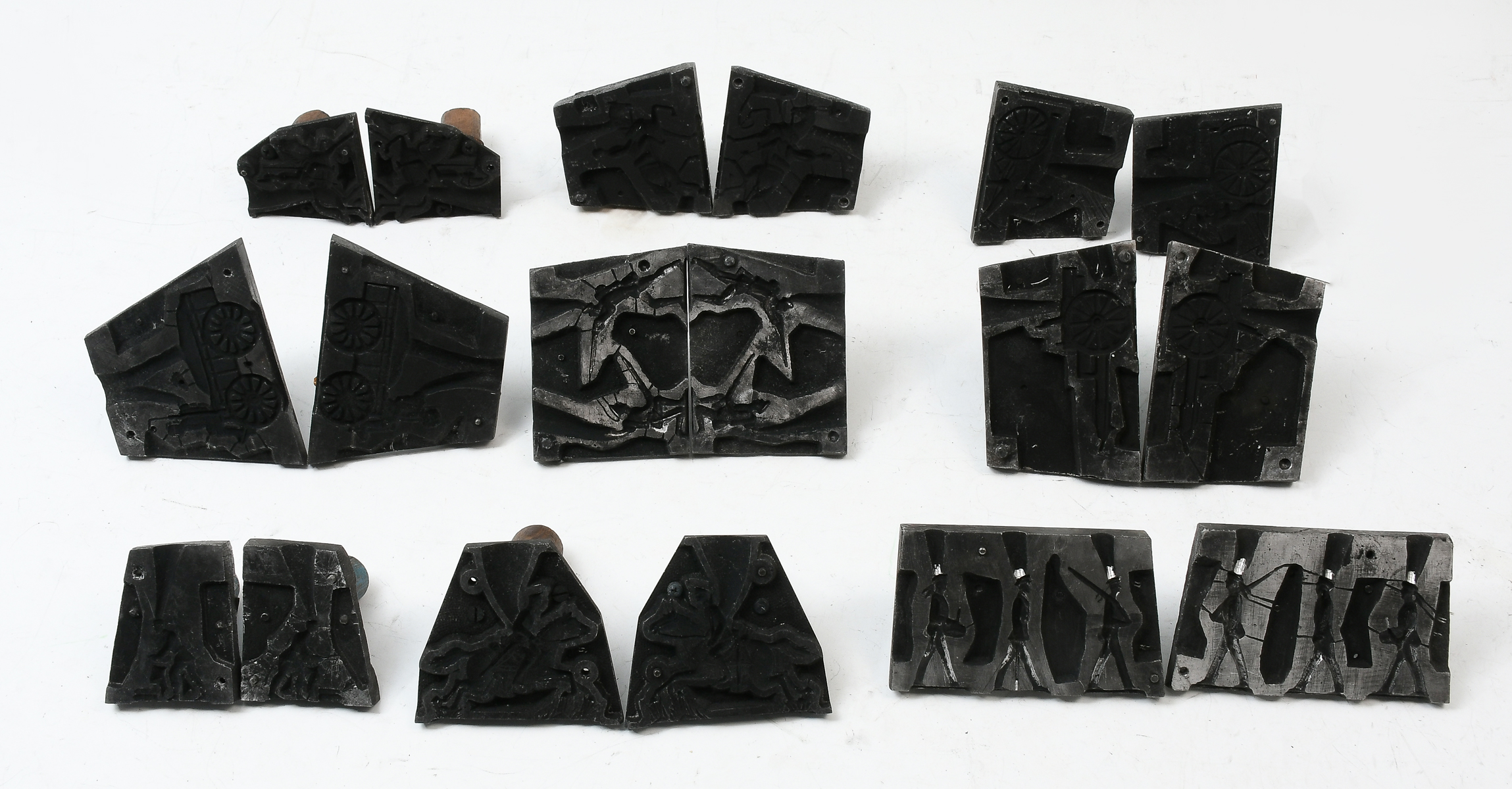 22 PC. CAST METAL MILITARY SOLDIER MOLD COLLECTION: A collection of 22 metal toy soldier molds. Largest Approx. 3'' h x 5.25'' l.