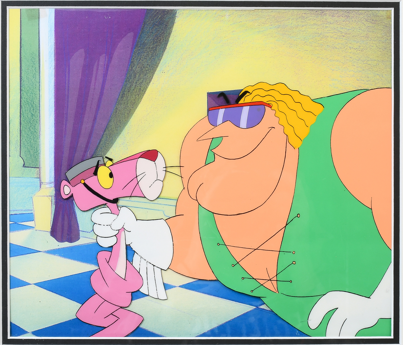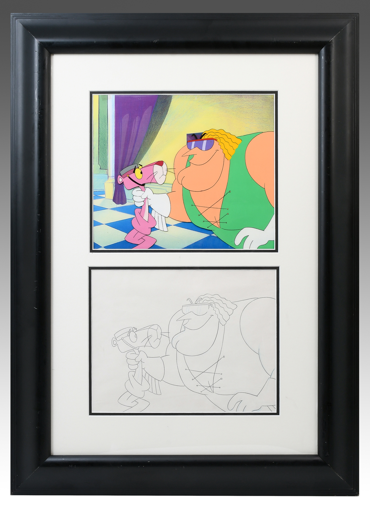 PINK PANTHER FRAMED SERICEL DEPICTING TWO IMAGES: Overall size with frame 28.5'' x 20.5'', purchased from Norwegian Cruise Lines.