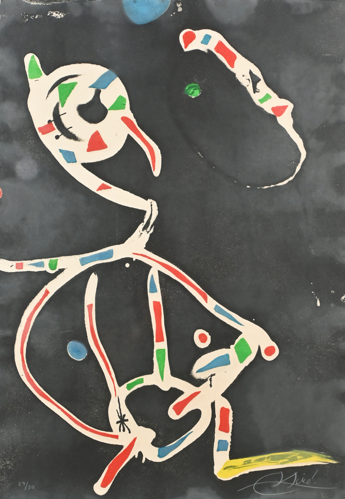 MIRO, Joan, (Spanish, 1893-1983): ''La Traca III'', Etching and Aquatint, 36'' x 25'', pencil signed lower right, numbered lower left 29/30, fine gilded framing, 45'' x 34''.